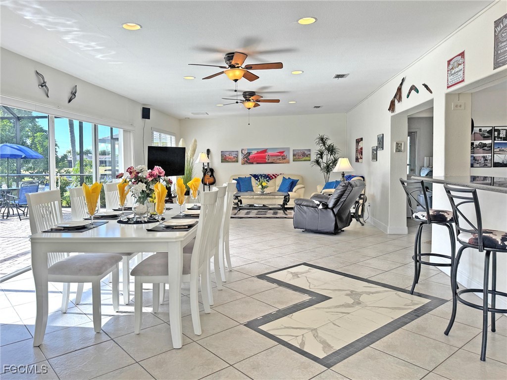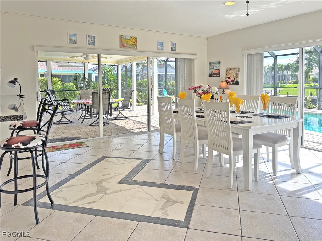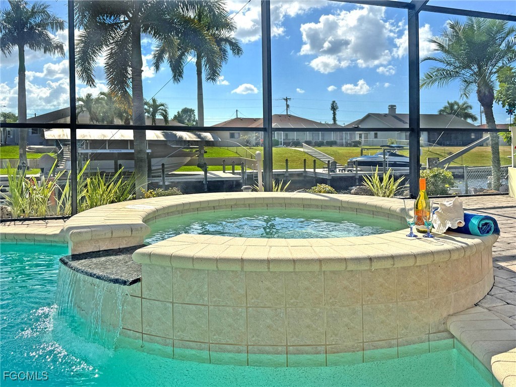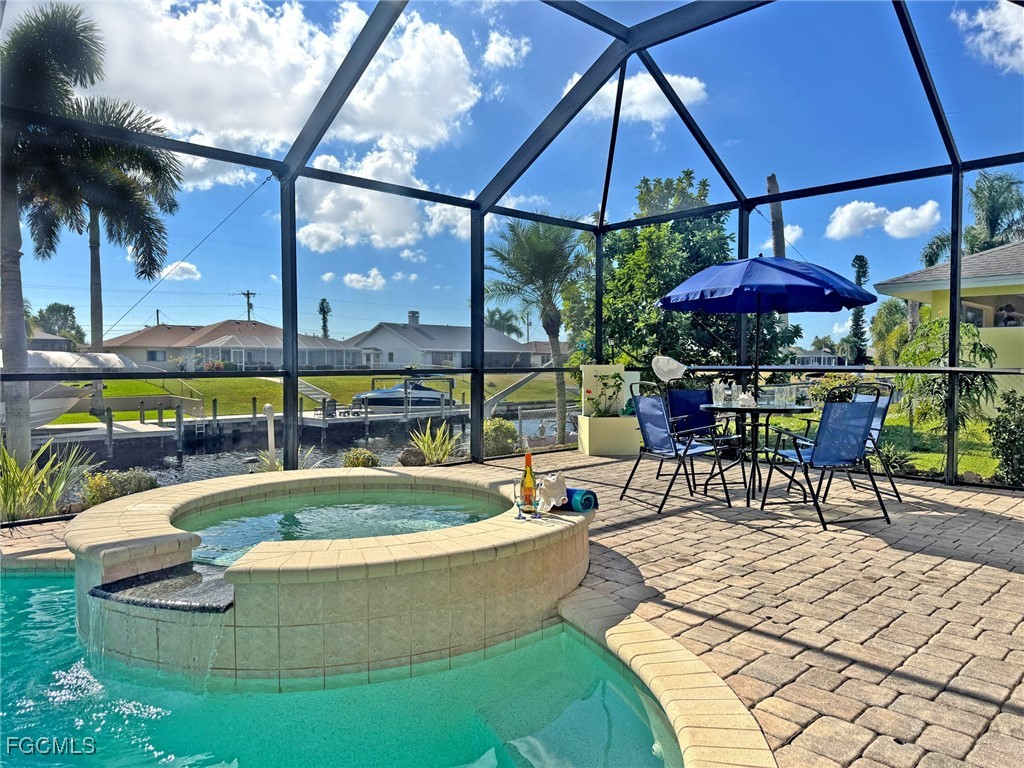 A well laid out kitchen with kitchen bar adjoins a perfect eat-in area with a clear view of the pool/canal. Enjoy soaking in the relaxing Jacuzzi or heated Pool. The large lanai has plenty of room for 2 seating areas, spacious and perfect for entertaining and family activities. Plenty of room for sun lounges. Large concrete dock with a seating area as well and see watch the boats go by.