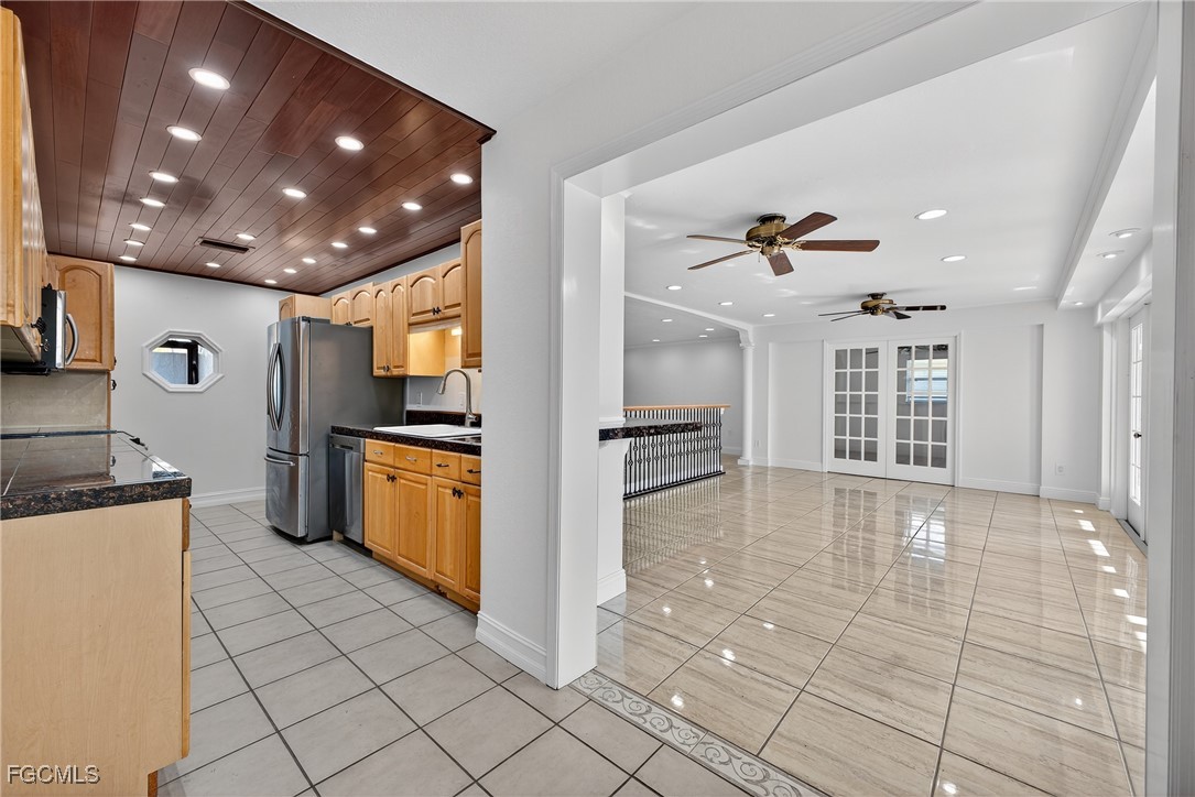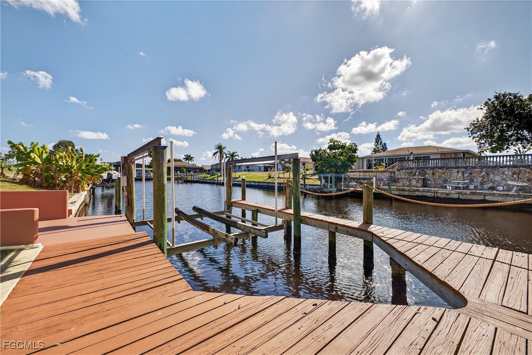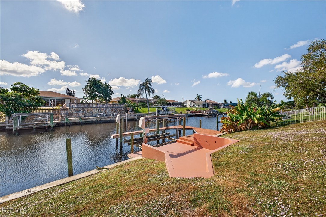 This spacious gulf access home is not in a flood zone. The home did not flood during Ian. The southern exposure gulf access home features 3 bedrooms 2 baths, a refreshing swimming pool, large backyard, a wrap around dock with a boat lift. Freshly painted inside an outside, 4 ton HVAC installed 8/3/22, roof installed 2/24/21, new garage door and opener installed 1/24, new tile and shower doors in master bath shower, new door knobs and hinges. This home is move in ready.