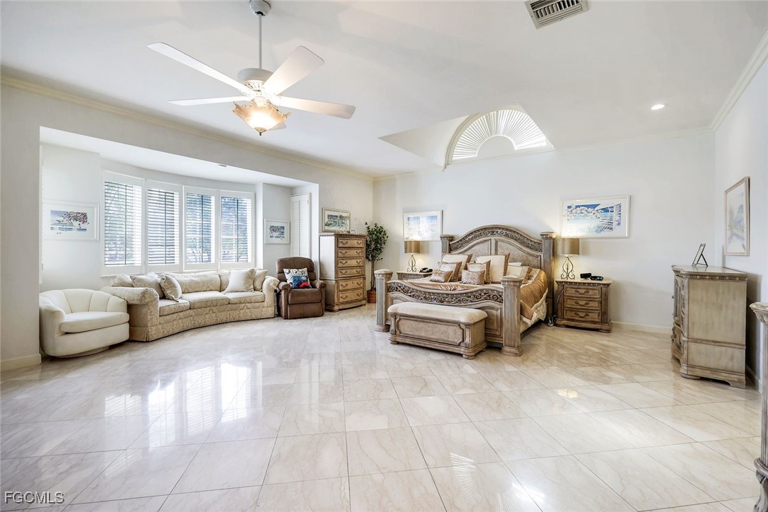 You have arrived at 15500 Gullane Ct., offering six bedrooms, five full baths and 2 half baths, immense room sizes, turn-key furnished, and an architectural scale rarely found in Fort Myers. Positioned on a quiet cul-de-sac with commanding street presence, this 8,400+ total square foot home is being sold turn-key furnished and delivers the lifestyle of a true Southwest Florida Executive home. A dramatic entry sets the tone, with 16+ foot ceilings, polished marble floors, fireplace and a dramatic staircase. This home offers unparalleled gathering and entertaining possibilities, and provides wonderful acoustics for music with a grand piano being included in the sale. At the top of the stairs, there is a large sprawling apartment with separate living quarters and three additional bedrooms and two full bathrooms. Perfect as a full in-law style apartment for multi-generational living. The classic library, with its fireplace and rich wood finishes, is a wonderful escape for card games, mahjongg, a movie, or to simply relax with a good book. Whether you are inside or outside on one of the multiple lanai’s or porches, there are so many peaceful places to enjoy the sweeping long-range views of the lake, plentiful with ducks, egrets, eagles and golfers playing through. The chef’s kitchen, formal dining, and generous spaces flow effortlessly. This home must be seen and experienced. What personal touches will you add, when you make it yours?.. The first floor primary suite spans its own luxurious wing, featuring a sun-filled sitting area and separate his and hers full bathrooms - each with dual sinks and walk-in showers, creating a level of comfort and privacy you deserve. Outdoor living is equally exceptional. An expansive screened lanai offers two distinct lounging and dining zones surrounding the oversized pool and spa, complete with a full outdoor kitchen and bar. This GEM stands as one of Fiddlesticks’ most iconic offerings—an extraordinary estate for the particular buyer seeking presence, privacy, and the ultimate country club living experience. Please call to schedule your private tour today!