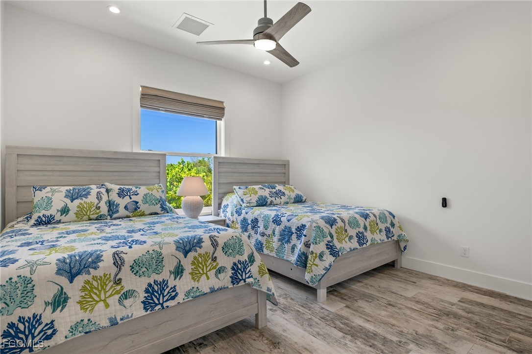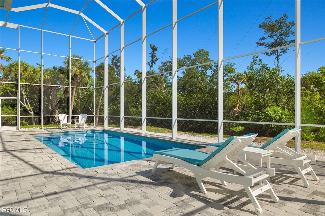 Built in 2021 with emphasis on high quality materials and a thoughtful floor plan, this beautiful Gulf access pool home features a metal roof, two story pool cage, all impact windows and doors, high ceilings, eight foot solid core wood doors, quartz countertops, custom wood cabinets, wood plank tile throughout, an interior staircase, front and back screened porches, and a heated salt water pool. It is situated on a double lot with Gulf access through Dinkins Bayou and offers an incredible setting that features native vegetation and abundant wildlife. Located along the bike path on the west end of the island, pulling out of the driveway you'll have immediate access to the miles of paths that extend from the lighthouse to Captiva. With Sanibel's spectacular Blind Pass Beach only a mile away and a Gulf access canal in the backyard, this property offers an ideal setting to enjoy exceptional island living.
