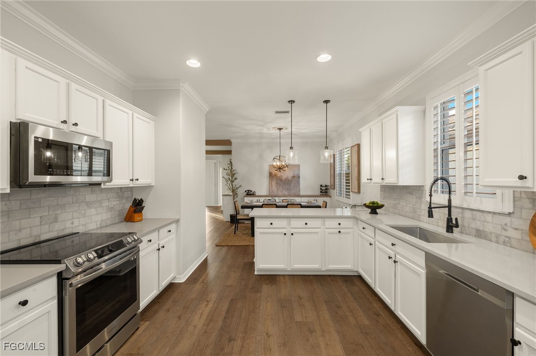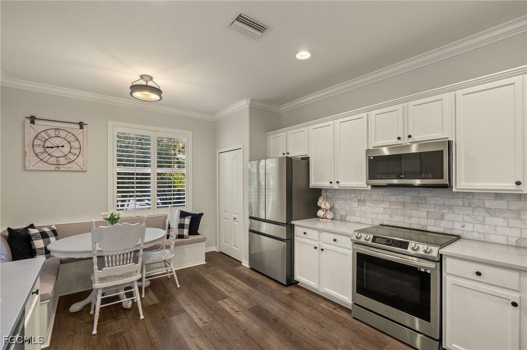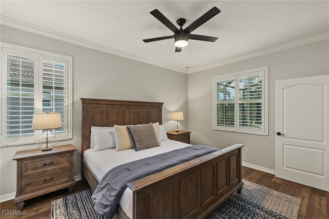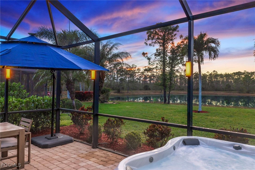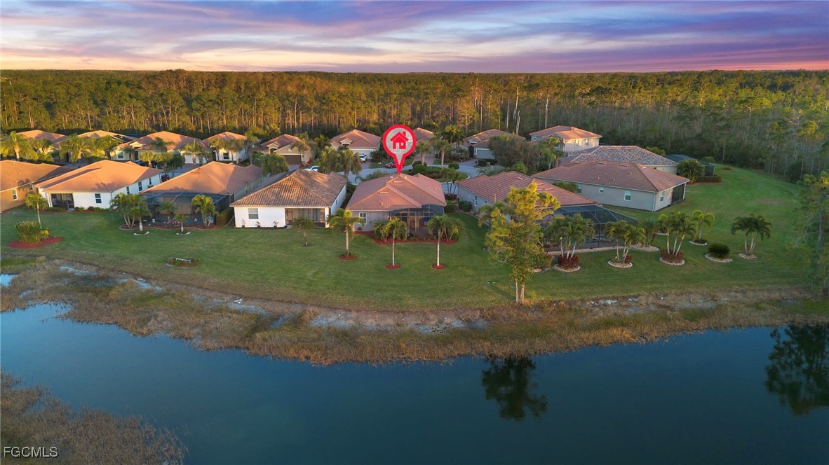 Look no further! This FURNISHED dream property, in the heart of Estero, boasts 3 bedrooms and 2 baths situated on a peaceful culdesac with stunning lake views. The Florida Mediterranean exterior showcases arches, stone masonry accents, a wrought iron screened entry and a tile roof that invites you in. As you enter into the home, you pass through an upgraded decorative glass front door that leads to an open foyer with impressive ceilings and crown molding throughout. The beautifully finished kitchen, equipped with NEW appliances, has an open concept feel that looks out onto the formal dining room. The kitchen offers ample cabinets and counter space, giving the culinary enthusiast plenty of room for storage and cooking! The kitchen feels like a day out at the café with the built in booth, quartz countertops, decorative backsplash and great natural lighting. This house has the perfect sized living room with ample seating space and decorative beams to give the home an elevated look. The gathering room looks out onto the gorgeous lake view and large covered lanai. Stepping outside you will find an extended screened in patio with to enjoy all of the wildlife views while you soak up the fresh air in the included above ground spa! The owner’s suite shares these incredible views along with an impressive primary bathroom. The bathroom offers a garden tub and a glass enclosed tile shower with a double bowl vanity. The two secondary bedrooms offer flex space for family, guests, office needs and more. The garage has a newly epoxied floor, hanging ceiling racks, a second refrigerator, and a portable generator. If you are looking for a beautifully furnished home with newer Samsung appliances/TV's throughout, freshly painted, move in ready with plantation shutters, aesthetic improvements, gorgeous views and space for recreation -look no further! Do not miss your opportunity to own this gorgeous home in a prime location. Bella Terra is a one of a kind community located just a few miles east of I-75 in Estero, off of Corkscrew Road. Bella Terra has lower HOA costs compared to other communities nearby while providing landscape maintenance, cable, internet, 24-hr gate guard, and more. This community is the perfect blend between amenities and nature with breath taking views of the 100 acres of beautiful lakes and the surrounding 400 acres of conservation preserves. Bella Terra amenities include a 7,000 sq. ft. Club House, with a fitness center, a resort style pool with a spa and waterfall, pickleball, tennis, bocce, & basketball courts, multi-use ball fields, an inline skate park, beach volley ball, butterfly garden, and playground.