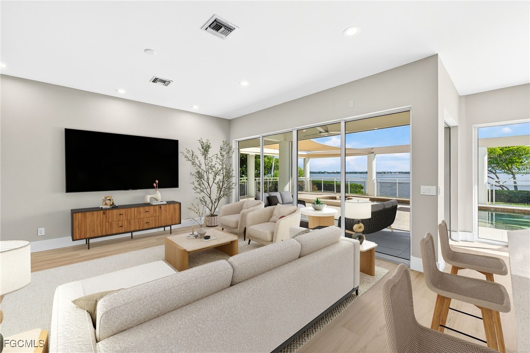 Direct Riverfront Estate in Buttonwood Harbor, a gated luxury enclave along the Caloosahatchee River between Cape Coral and Fort Myers. This rare 0.51-acre parcel sits directly on the River with a groomed sandy white beach in the backyard and a private boat slip in the community-maintained canal—offering a lifestyle where every day feels effortless. The 3,600 sq ft residence features an oversized 3-car garage, 4 Bedrooms, and 4 Full Bathrooms, anchored by a Standing Seam Metal Roof installed by Crowther Roofing in 2023—renowned for superior durability, wind resistance, and strong insurance appeal. Current policies reflect excellent insurability for a waterfront home, with flood coverage at $2,200/year and homeowners at $8,650/year. The entire first floor was extensively remodeled with high-end finishes, including new engineered wood flooring, custom cabinetry, quartz countertops with a full kitchen backsplash, designer bath tile, new shower enclosures, 8’ solid-core interior doors, enhanced closet systems, and comprehensive plumbing and electrical upgrades. Sliding glass doors, drywall, paint, and finish carpentry were all refreshed, giving the main level a clean, refined, turnkey interior. Upstairs, the primary suite—preserved with its original custom finishes—offers endless possibilities for you to personalize and create a sanctuary of your own. Additional enhancements elevate both comfort and peace of mind: Electric roll-down shutters protect the southern exposure, while a whole-home generator with two underground propane tanks ensures uninterrupted power and provides instant heat to the open-air pool and spa. The propane system also fuels the poolside fire pit, creating the perfect setting for evenings by the water. Living in Florida in a direct riverfront home is a dream come true at 12540 Panasoffkee Drive. Located just 10 minutes to Downtown Fort Myers, this boating community offers tennis and pickleball courts—close enough to stay connected, yet secluded enough to unwind and disconnect. Grab a good book and a cold drink; listen to the waves touch your private beach as you read. Host holidays with ease, with plentiful parking and generous gathering spaces. Live your best Florida life—the way it was meant to be lived.