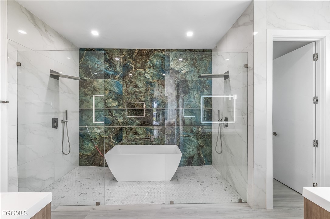 Inside, elegance meets comfort across 3,900 sq ft under air (7,700 total). There are 4 bedrooms, 5.5 baths, & furnishings curated by Clive Daniel Home that bring a soft, modern warmth to every room. The floating staircase crafted from Brazilian Cumaru wood is a piece of art in itself. Two luxurious primary suites—one upstairs and one on the main level—feature pocketing sliders that frame peaceful water views and invite natural light throughout the day.