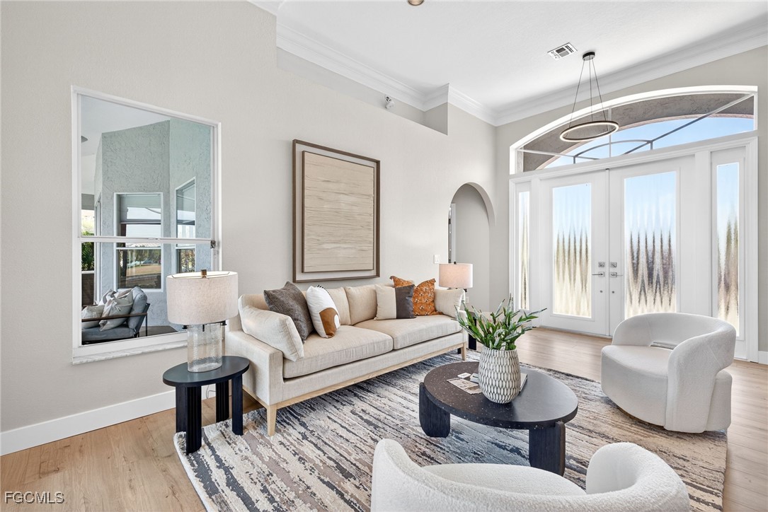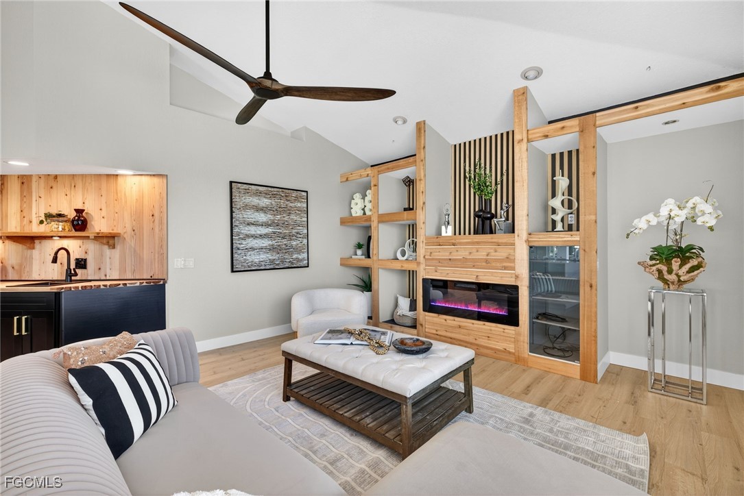 Recently remodeled sailboat-access pool home offering breathtaking intersecting canal views on an oversized lot with 215 feet of water frontage in a prime Southwest Cape Coral location. The stunning chef’s kitchen features a double island with quartz countertops, a spacious breakfast bar seating four, new GE appliances, custom black cabinetry with elegant gold hardware, and panoramic views of the pool and canal.