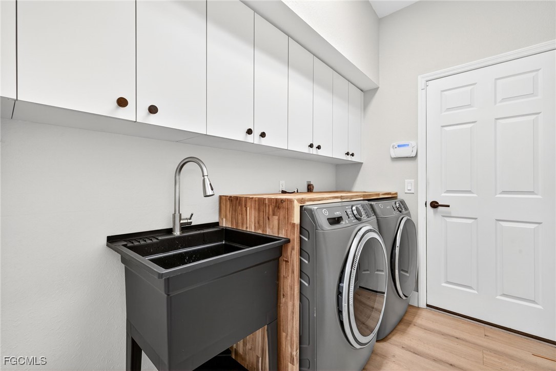 Soaring vaulted ceilings enhance the kitchen and living room, which also includes a fireplace and wet bar with butcher block countertop and built-in wine cooler—perfect for entertaining. New luxury vinyl plank flooring, updated baseboards, and fresh interior paint complete the modern feel throughout.