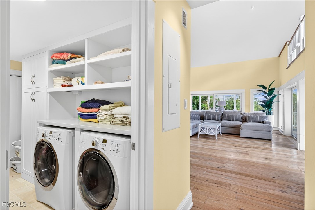 Two guest bedrooms are conveniently located on the main living level, offering excellent separation from the primary suite. One bedroom opens directly to the screened porch, creating a peaceful retreat with canal and bay views and easy access to outdoor living. Both bedrooms are well sized and thoughtfully placed near full baths, making them ideal for family, guests, or flexible use.