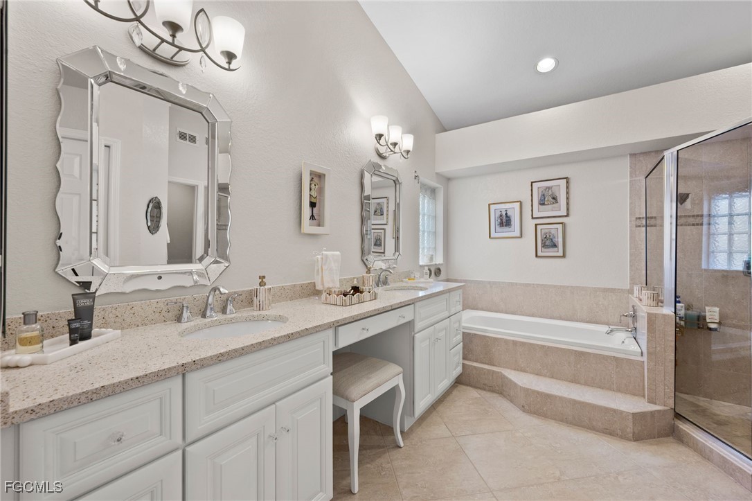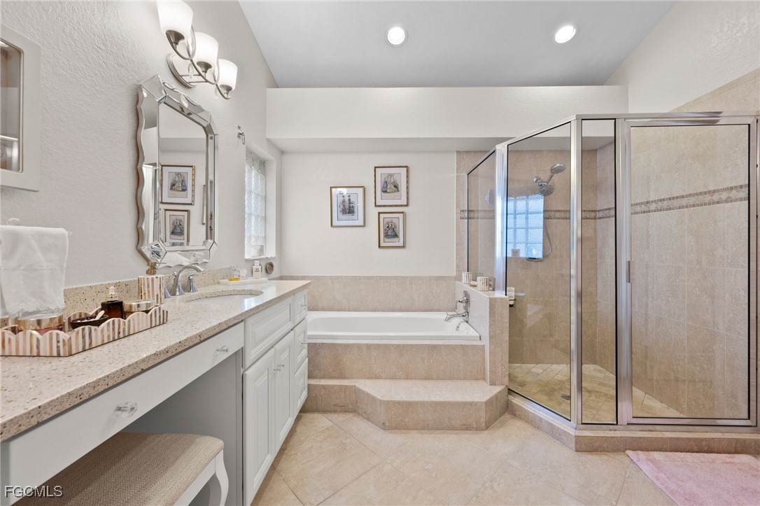 Immaculately maintained and updated 3B/2Ba home in popular Cross Creek Estates! Stunning upgraded kitchen with soft close White Cabinetry, gorgeous Terrazzo countertops, custom backsplash, newer appliances including a double oven, new hot wtr htr (2025). Featuring beautiful wide plank, wood flooring thru out, New Tile Roof (2015), full hurricane protection w/new electric hurricane screens, electric panels and a hurricane rated garage door. High efficiency Levelor, honeycomb shades thru out, custom built ins, wood burning fireplace - great for holiday ambiance! Spacious split floor plan with soaring vaulted ceilings, private guest area with pocket door, 2 bedrooms or guest bedroom and den w/custom bookshelves, updated guest bath and a spacious primary bedroom with sliders to the expansive wrap around lanai, updated, luxurious bath w/updated white cabinetry, Terrazzo countertops, jetted soaking tub, separate shower and dual sinks. The spacious screened lanai wraps around the back of the home and offers great views of the lushly custom landscaped yard and features desirable southwest exposure. Perfectly located within walking distance to the clubhouse, this is the one to call home! Enjoy Friendly neighbors and a Super convenient gated community offering sidewalks, full clubhouse amenities: Jr. Olympic lap pool & spa, fitness center, tennis, pickleball, dog park, bocce, racquetball, playground, food truck & community events & pay for play golf with optional low fee membership ($1k/yr!) at Cross Creek CC ! Super Low HOA fees (just $2,240/yr!), OUT of the flood zone, no CDD or city taxes & close to Gulfcoast Hospital and medical complex, Whole Foods, shopping, dining, SWFL Int'l airport and a short drive to area beaches!