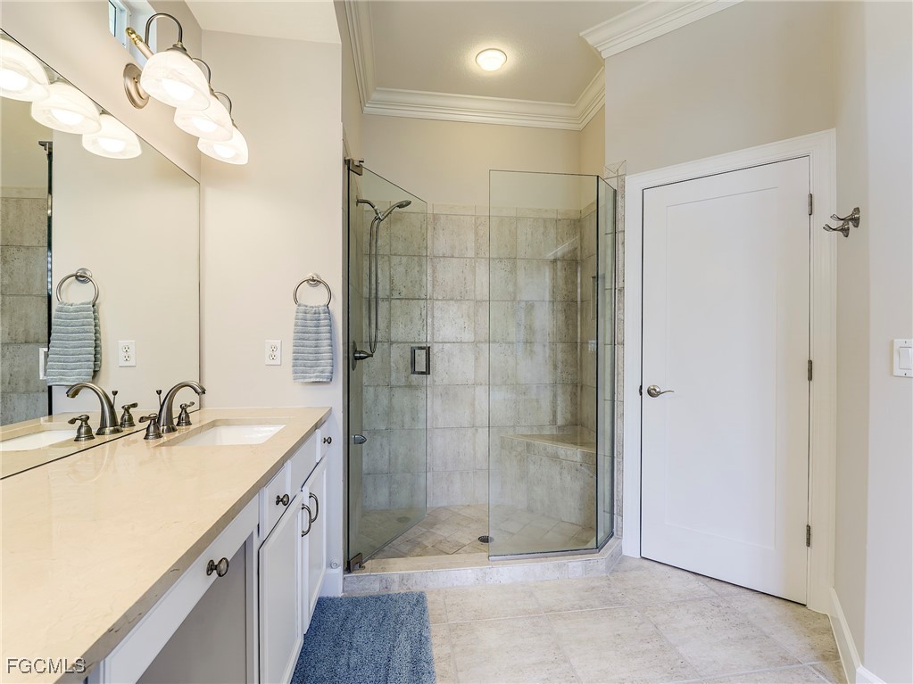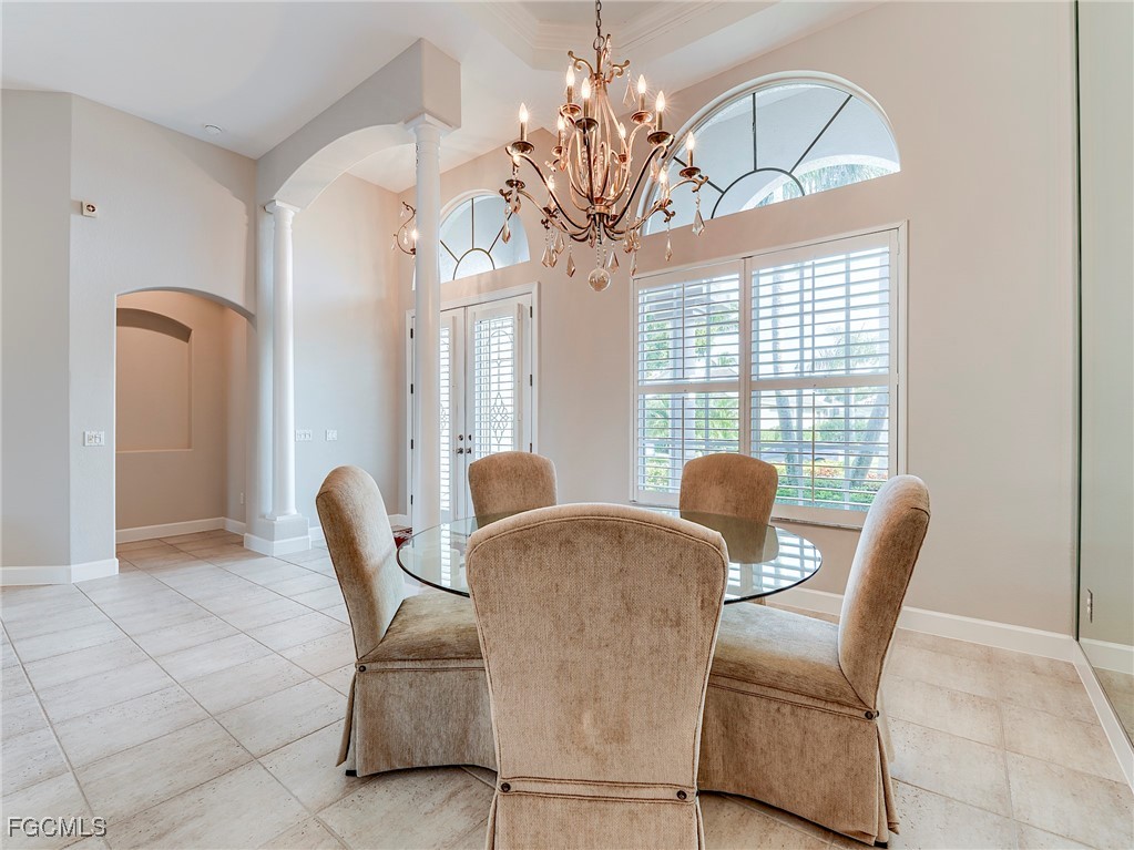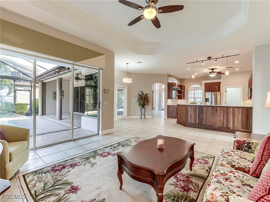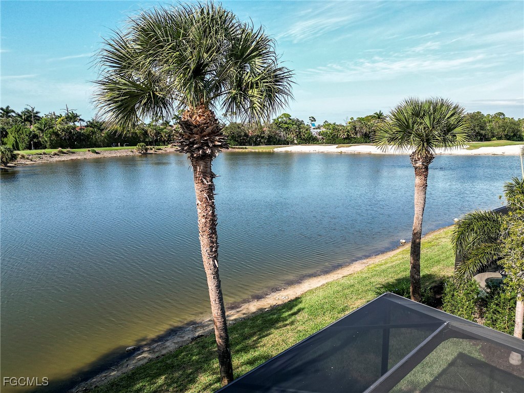 Lakefront, golf view, total storm protection, plus a 2-car garage, extended to 24 feet for a large SUV or pick-up truck. This house has it all - including an updated kitchen, baths and new roof! The kitchen has newer all wood cabinetry, granite counters and backsplash, Bosch S/S appliances and a built-in wine cooler. The 4 bedrooms all have updated bamboo wood flooring and all 3 baths have been updated with new vanities, counter tops, tub and showers. The laundry room has updated front-load Maytag W/D. The front porch and pool deck are re-surfaced with an artistic hand-troweled concrete, and the new pool cage has "picture frame" screens for a wonderful sunset view of the lake on the 10th fairway. The pool and spa have both solar and electric heating and a retractable awning for the lanai. The A/C system was installed late 2023. The HOA is very well run with low quarterly fees providing all lawn maintenance on a weekly schedule, 24x7 attended gated access, a community pool, hot tub, 4 Har-Tru tennis courts, and well-equipped fitness center open 24x7. Comcast fiber-optic cable and the Xfinity X1 platform with up to 4 TV/DVR boxes, and high-speed Wi-Fi Internet are all part of the dues - over a $750 quarterly value at retail. Social membership (for Club restaurant access) or golf membership at The Golf Club at Crown Colony is optional. And there is no waitlist for membership! This Club was chosen for the 2022 LPGA $1.5M Drive-On Championship, hosting the world's top women golfers, and is also used for PGA qualifying events.