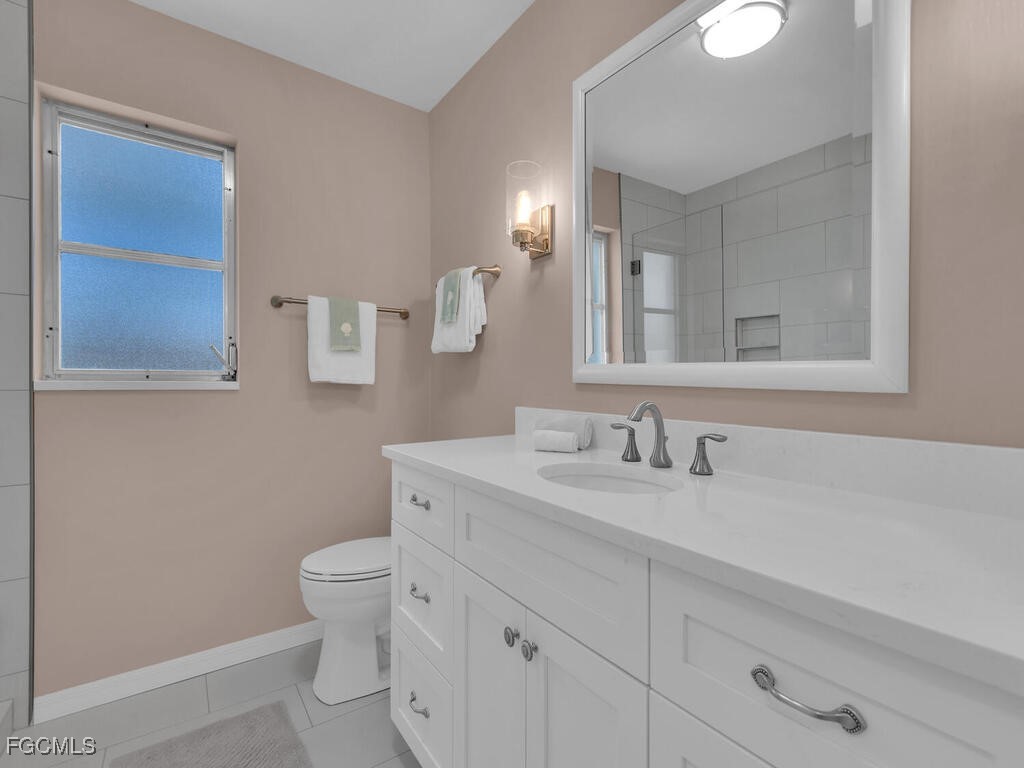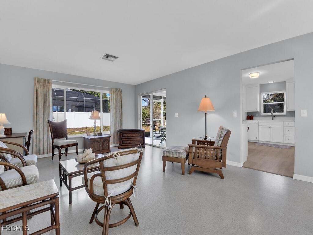 Located less than one mile to Bonita Beach, in Collier County, this half-acre property will be hard to compare for the price especially with the deeded "Gulf of America" access around the corner. Come step into a charming and impeccably maintained 2-bedroom, 2-bath home that truly feels larger than its 1,281 square feet. Many updates have taken place, from the beautifully refinished terrazzo floors to the fully renovated quartz kitchen and bathrooms, creating a bright, inviting and move-in ready interior. The open layout flows seamlessly, maximizing space and natural light, while the expansive lanai offers an ideal spot for relaxing or entertaining in Florida’s gorgeous weather. Car enthusiasts and hobbyists will appreciate the oversized three-car garage, providing ample room for vehicles, storage, or projects. Perfectly blending comfort and functionality, this home delivers a rare combination of style, practicality, and outdoor living space, making it an exceptional opportunity for buyers seeking a turnkey residence in a highly desirable area. For the future, remember this parcel is two and one half buildable lots in Bonita Shores, inevitably the next "knock down" neighborhood just off the coast. Great income earning potential or quintessential "beach cottage" for you and your family to make their own while being a short bike ride, jog or walk to the several of our pristine beaches.