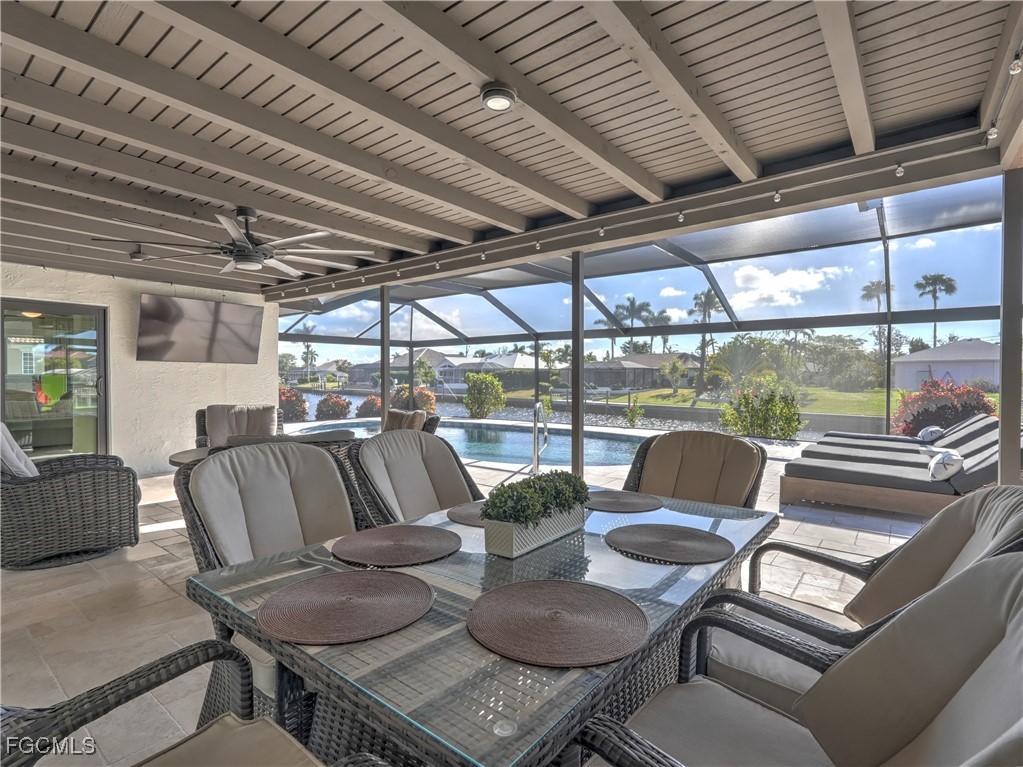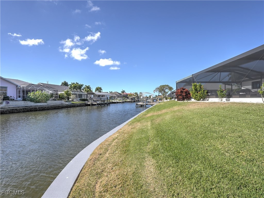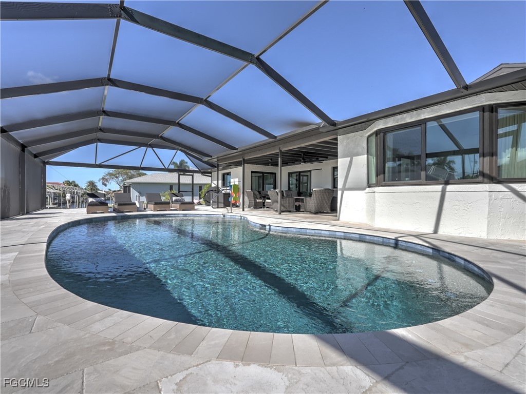 Rare Find, Beautifully Updated 3/2 pool home setting on a Huge, .38ac, Intersecting Canal, Direct Gulf Access lot, in SW Cape Coral. Located at the end of the cul-de-sac. All upscale designed (2023), matching Tile throughout, solid wood cabinets w/Quartz counters kitchen & baths, Very nice stainless appliances, split bedrooms, Open floor plan, power inside blinds over High Impact Windows. Impact Sliders take you to the Oversize lanai surrounding the newly updated pool with Travertine deck and new pool cage highlighted by the Panoramic Screens. The Lanai offers plenty of room to entertain, watch TV or just relax. Pool is salt water and features a new heater. This is truly "Move-in-Ready". Take a look, you won't be disappointed!!!