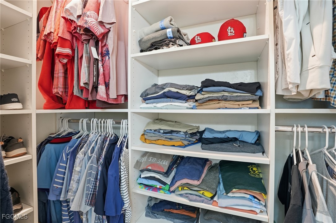 The primary suite features vaulted ceilings, pool access, and an updated ensuite bath with custom tile work, a jetted tub, walk-in shower, and a spacious walk-in closet. Two guest bedrooms are split from the primary and share an updated guest bath.
