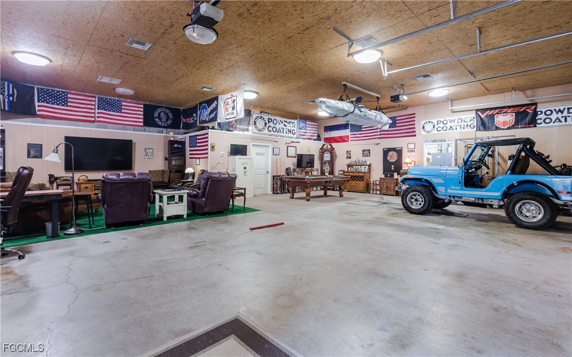 THIS UNIQUE AND RARE PROPERTY PRESENTS AN EXCEPTIONAL OPPORTUNITY for car enthusiasts, collectors, or anyone in need of additional storage or enclosed space. Situated on 3/4 ACRE, this 3-bedroom, 2-bathroom residence features a substantial 2,400 SQ. FT. (40x60) OUTBUILDING that is fully UNDER AIR. The structure includes FOUR GARAGE DOORS, with one bay designed for DRIVE-THROUGH ACCESS, all situated on a 10-inch thick concrete slab.