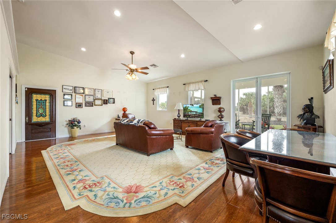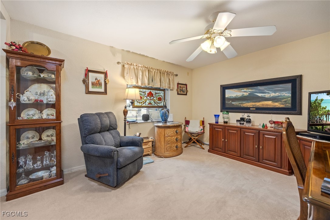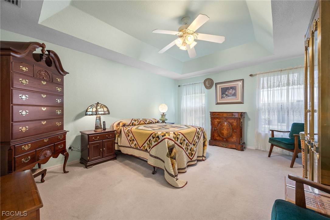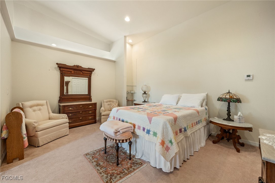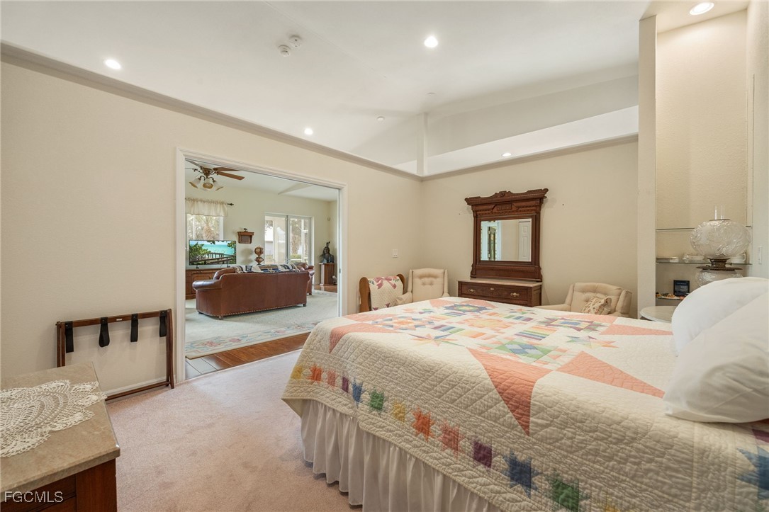 The spacious primary suite features premium carpeting, a large walk-in closet, a walk-in shower, and a relaxing soaking tub. Step outside to the expansive screened lanai—perfect for morning coffee or afternoon barbecues. A paved walkway leads to the guest house or office, which includes a generous 26' x 19' great room with a half bath, plus a 15' x 12' bedroom with a full bathroom and shower.