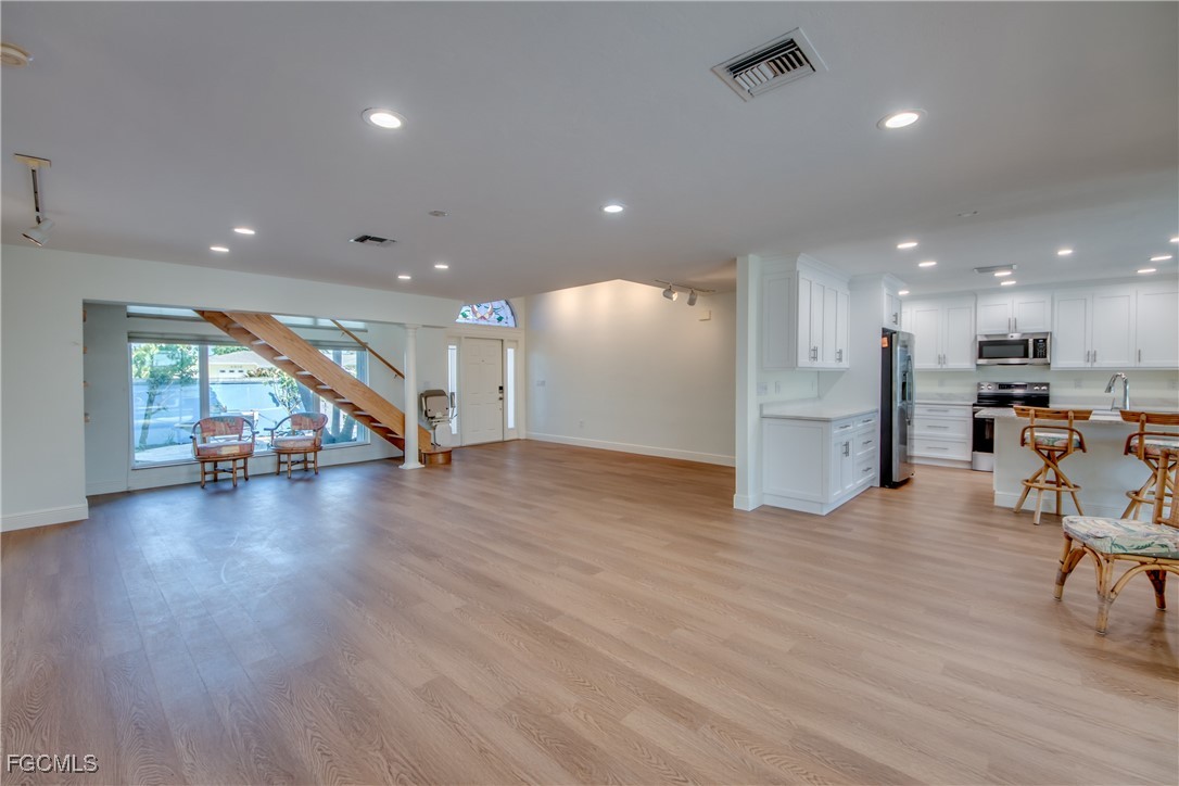 2-story pool home with direct sailboat access and over 3300 SFT of living space! Only minutes to the river! This property offers 4 bedrooms, 3 bathrooms, an art studio and work-out room on the second story and was completely remediated and remodeled. Upgrades and features include a new roof (2022), new AC (2022) new vinyl flooring and baseboards on the first floor, a brand-new kitchen, new vanities with quartz countertops in all bathrooms and a new washer and dryer. The beautiful courtyard by the entrance provides extra outdoor-living space and privacy. Currently one of the bedrooms on the first floor is being used as a game room, but can be converted back to a master-bedroom with walk-in closet and bathroom. The home features 3.5 garage spaces and a boat dock with lift. Seller's flood insurance ($1,479/ year) is assumable. Please check out the virtual tour.