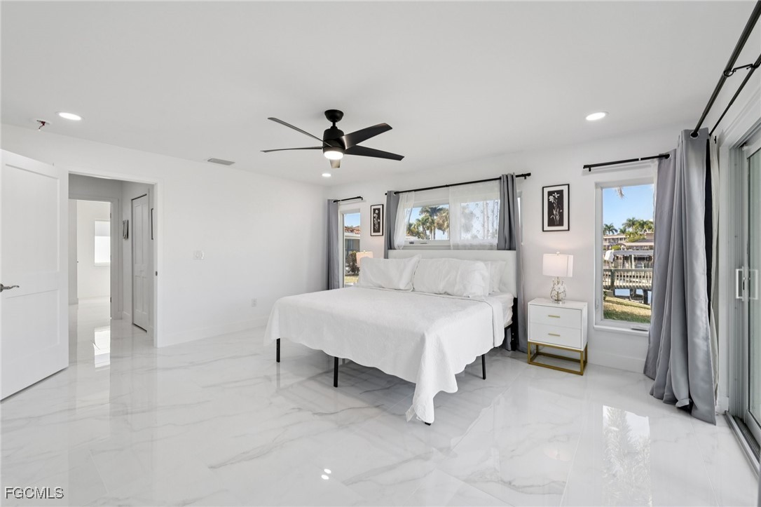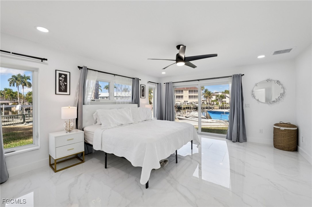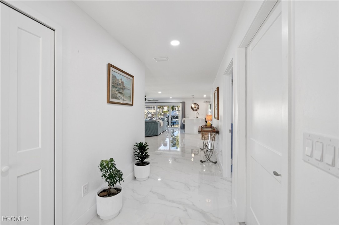 When it comes to boating access, premier location, and exceptional quality, this home truly stands out. The owner took the home down to the concrete walls and rebuilt the entire interior of the residence, masterfully redesigning it with the utmost attention to beauty, quality, and design. Every detail has been completely redone—from the roof, interior walls, electrical, plumbing, windows, and air conditioning to the high-end finishes throughout. This impressive residence sits on an oversized lot measuring 98 feet wide by 146 feet deep, along a massive canal over 190 feet wide, which is also one of the deepest canals in the area.