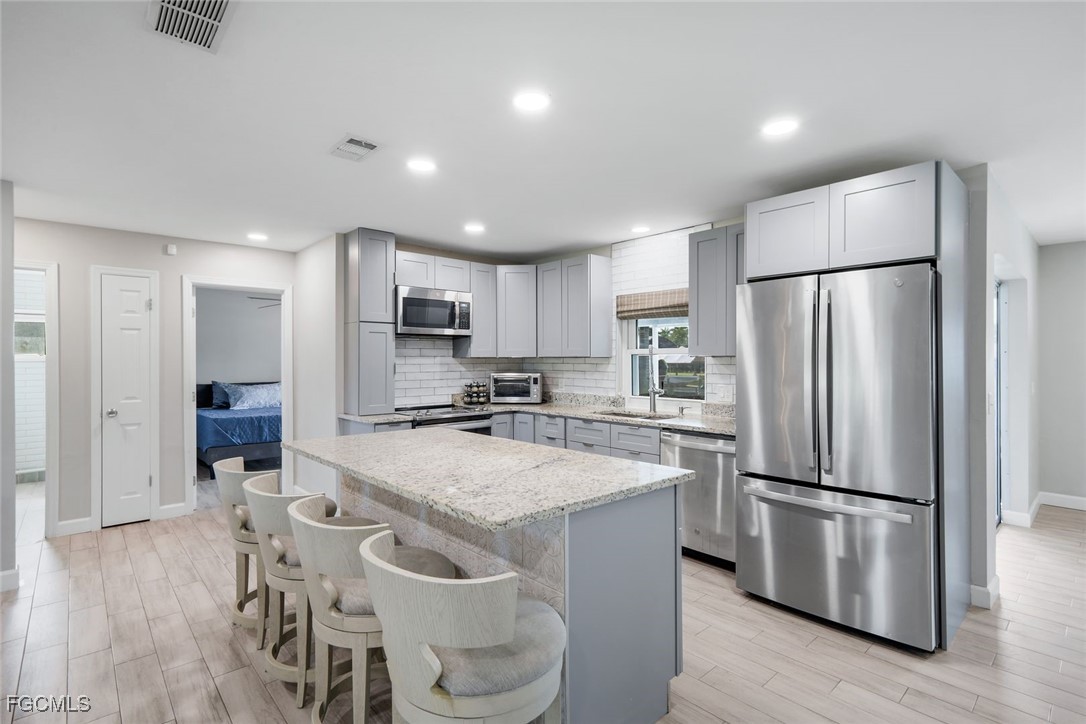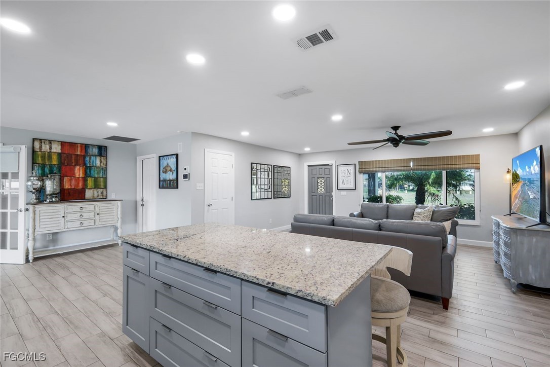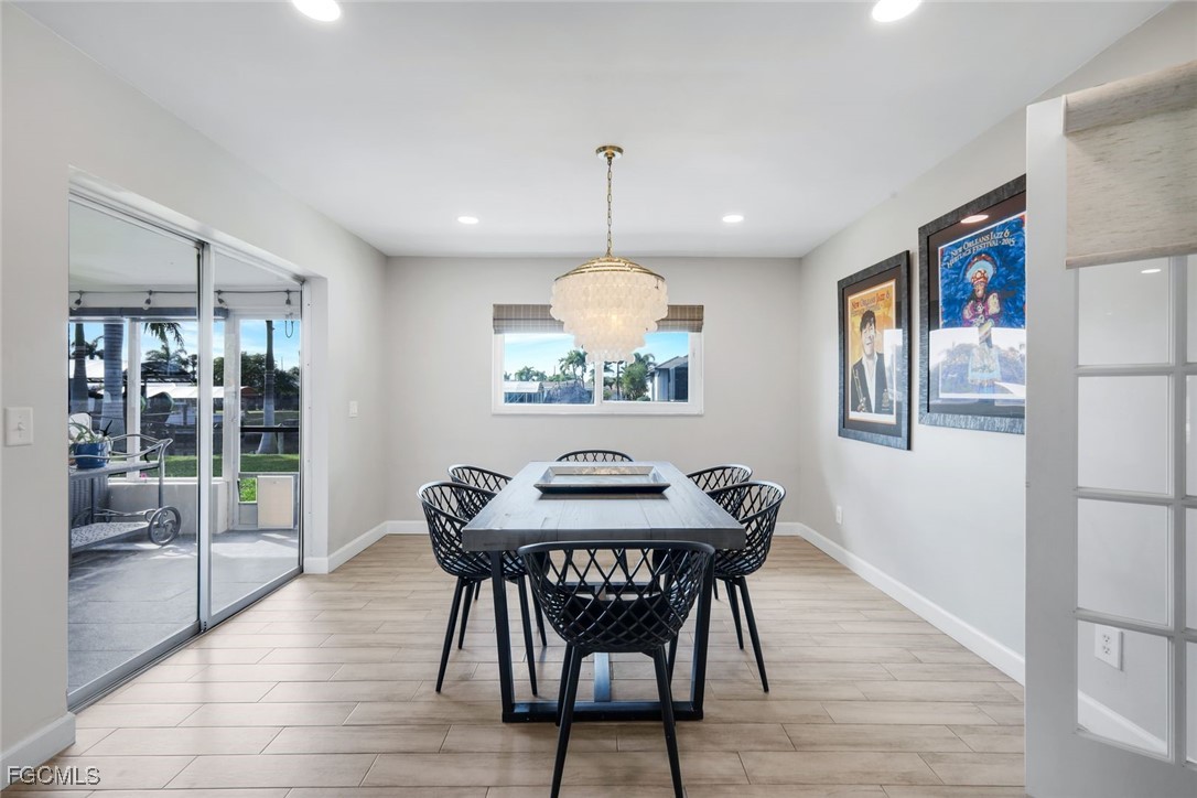 DIRECT SAILBOAT ACCESS pool home on a Deepwater canal just minutes to open water, ideally located within walking distance to the Cape Coral Yacht Club. This beautifully remodeled home offers 1,500 sq. ft. of living space with 3 bedrooms, 2 bathrooms, and a two-car garage (With one garage door, but an additional door can be added), perfectly blending modern upgrades with a prime boating lifestyle. Inside, the home features a bright and open split floor plan with tile flooring throughout. The updated kitchen is designed for both style and function, showcasing granite countertops, a decorative tile backsplash, center island, stainless steel appliances, and a convenient window pass-through to the lanai, perfect for entertaining. The spacious owner’s suite serves as a private retreat with a luxurious remodeled ensuite bath featuring a makeup vanity, walk-in shower, and large walk-in closet. Additional upgrades include a brand-new roof (2025), hurricane impact windows (2023), new electrical panel, ADT security system, split A/C in the garage, and updated lighting and ceiling fans throughout. Sliding glass doors open to an expansive screened lanai with ample space for outdoor dining and lounging. Just off the lanai, the large heated pool was installed in 2020 with a sun shelf and a private outdoor shower. Enjoy some of Southwest Florida’s most stunning sunsets from this western-exposure home, beautifully enhanced by professional landscaping completed in 2022. Lush palms frame the property, complemented by an avocado and lemon tree, while a fully fenced yard provides added privacy and peace of mind. Boaters will appreciate the new composite dock with a 10,000 lb. boat lift (Installed in 2022), providing premium access with only a 5-minute ride to open water. Centrally located near Downtown Cape Coral, Cape Harbour, and Tarpon Point, with quick access to Sanibel, Captiva, Fort Myers Beach, shopping, dining, medical facilities, and top-rated schools. This home offers the very best of Southwest Florida waterfront living. Call now to schedule your private showing!