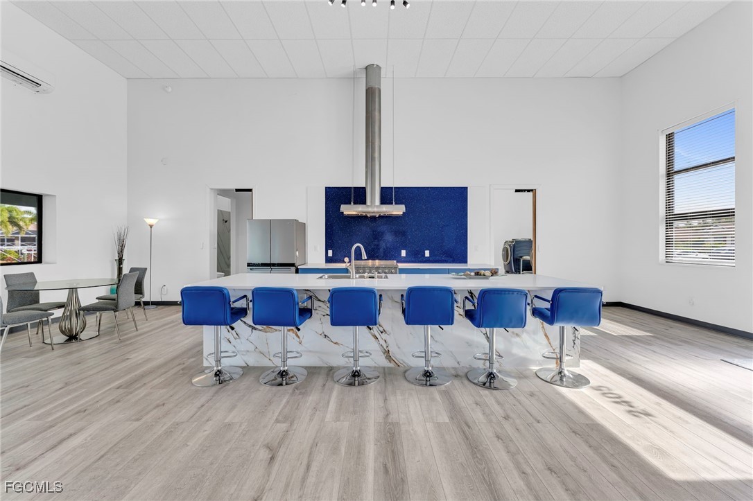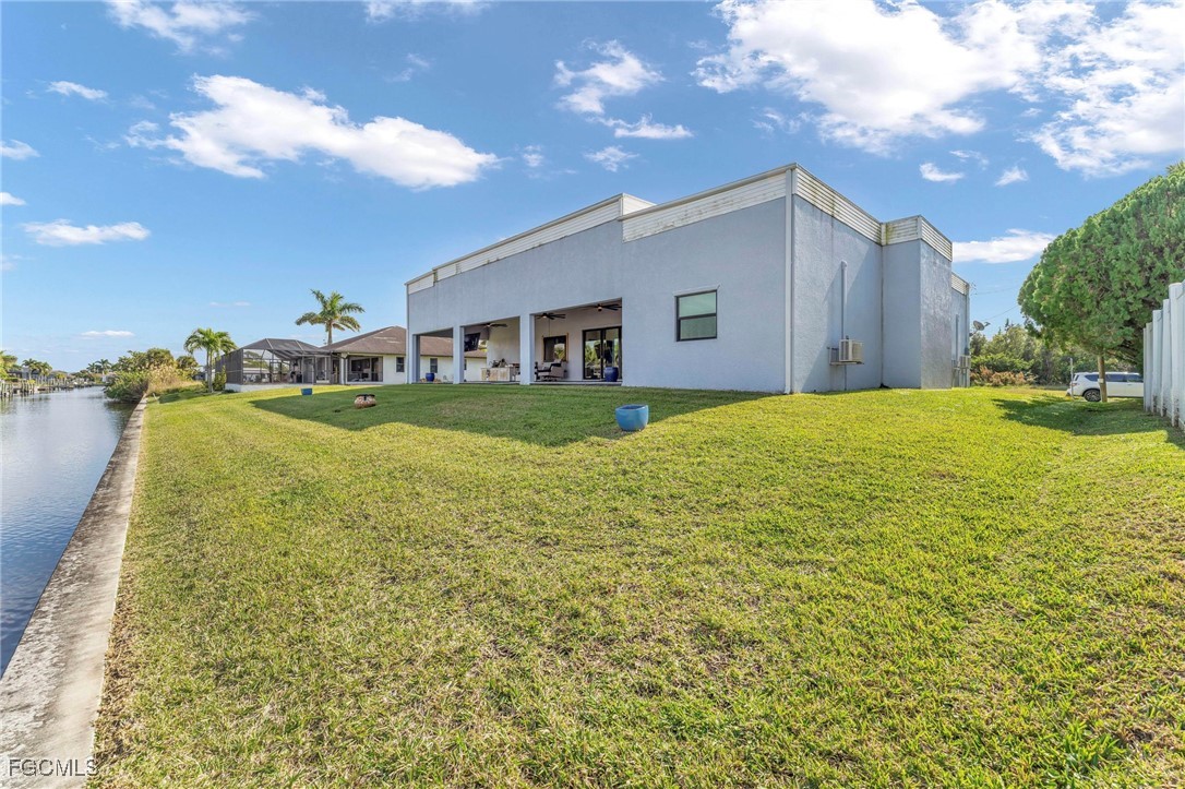 This stunning 3-bedroom, 3-bath contemporary Gulf access home offers over 3,000 square feet of living space under air, expansive canal views, and outstanding boating ride to the Gulf of America, making this property an ideal retreat for boating enthusiasts. Built in 2023, the home showcases a striking blend of industrial-modern design and European-inspired finishes, creating an inviting atmosphere that feels both open and comfortable. Dramatic 16-foot ceilings, wide doorways, and an open-concept layout allow natural light to pour in while enhancing ease of movement and everyday livability. Each of the three generously sized bedrooms features a private en-suite bathroom, offering comfort and flexibility for guests or multigenerational living. The bathrooms are elegantly appointed with easy-entry walk-in showers, floating vanities, and floating toilets, all thoughtfully designed within a handicap-accessible, barrier-free layout. The kitchen serves as both a focal point and functional workspace, featuring quartz countertops, stainless steel appliances, a Forno oven, a Zephyr vent hood, and clean, modern finishes. Mitsubishi multi-zone mini-split systems throughout the home provide quiet, energy-efficient climate control with individual room settings. Outdoor living truly shines with an expansive lanai accented by a tongue-and-groove pine ceiling, oversized fans, a rustic Italian-style grill, and a convenient outdoor sink and prep area—perfect for entertaining or simply relaxing waterfront. Located on intersecting Gulf access canals with a concrete seawall, this exceptional waterfront residence combines modern design, comfort, and the ultimate Florida boating lifestyle in one thoughtfully crafted package. Step inside and feel the difference—schedule your private tour and discover the ultimate Florida boating lifestyle.