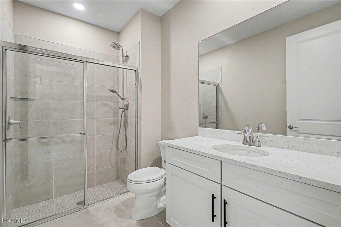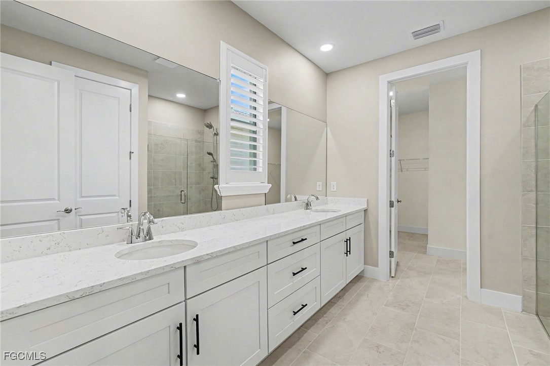 The owner’s suite serves as a serene sanctuary, featuring a tray ceiling, additional recessed lighting, a generous walk-in closet, and a spa-like bath with dual vanities and a large luxury shower. The secondary bedroom offers an ample closet and convenient access to a full hall bath.