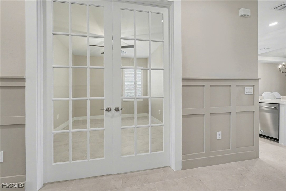 The den/flex room is enhanced with newly installed glass doors, offering privacy for a home office or quiet retreat. An added built-in entry closet—rarely found in the Flatwood model—provides extra storage and functionality.