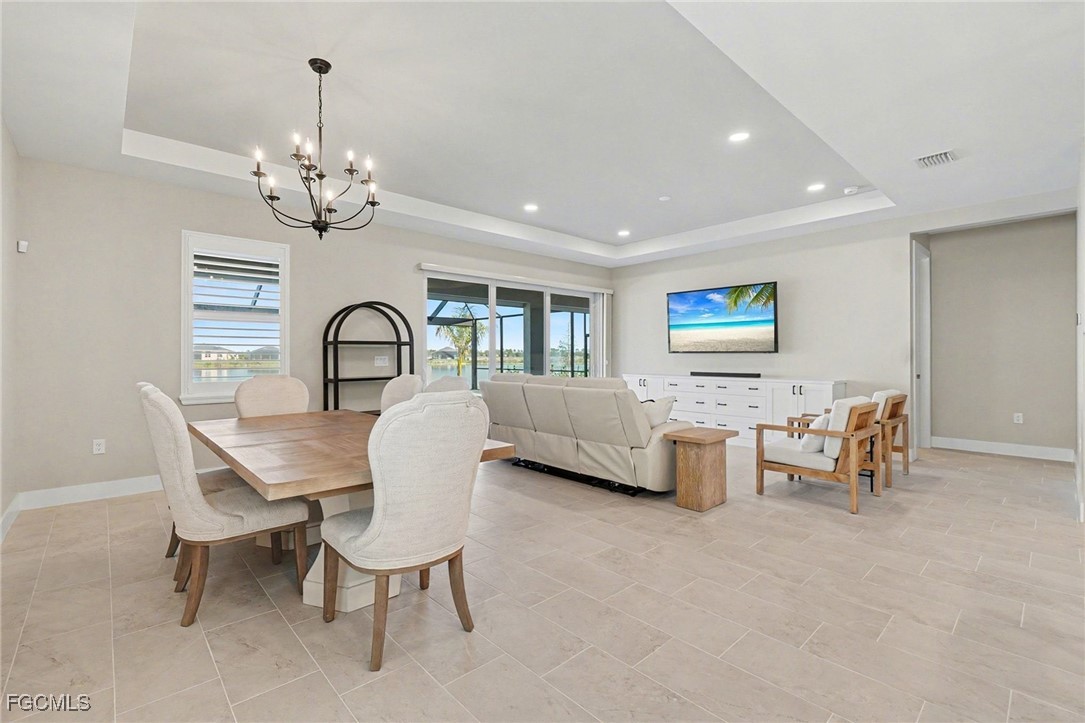 Step into the welcoming foyer highlighted by decorative shiplap accent walls, leading into a stunning great room with tasteful built-in cabinetry, a tray ceiling, and recessed lighting. The dining area, located just off the great room, provides flexibility for casual dining or more formal entertaining.