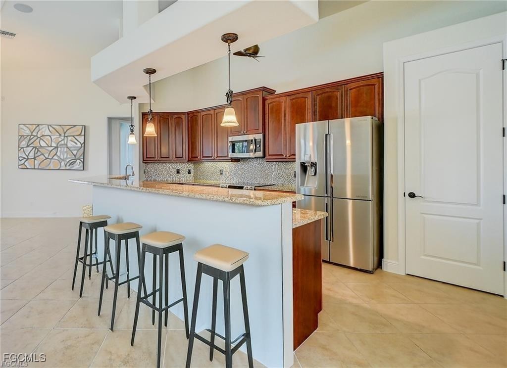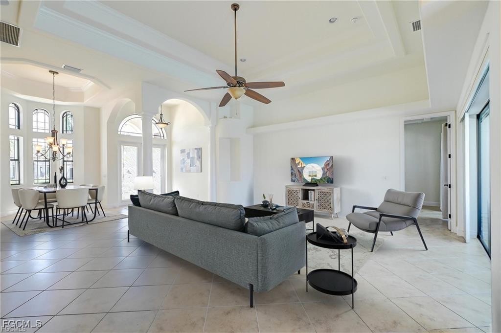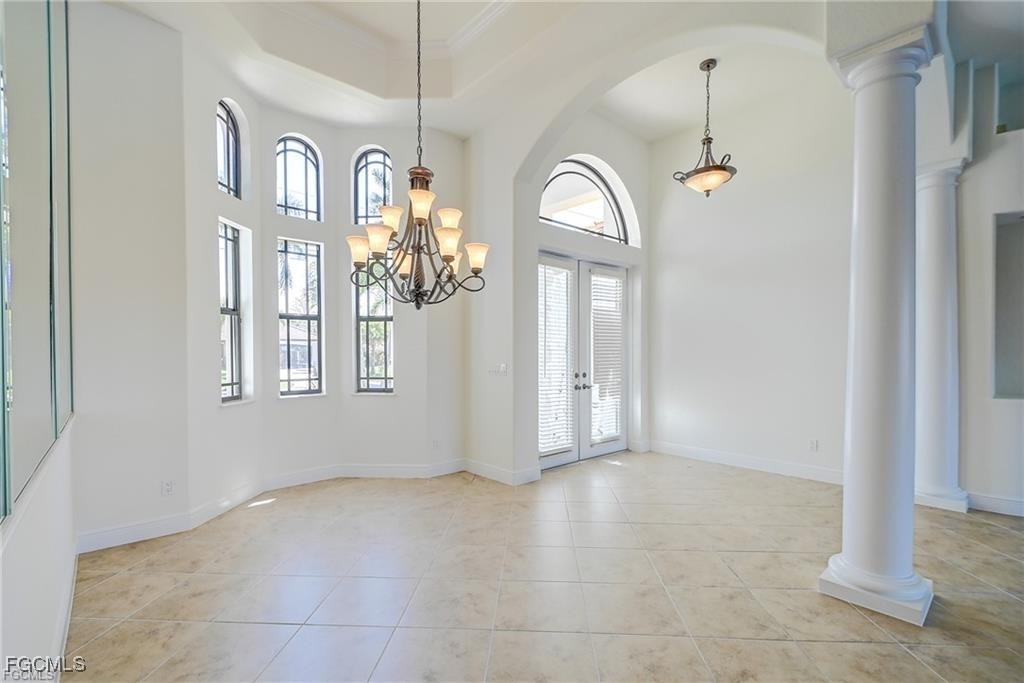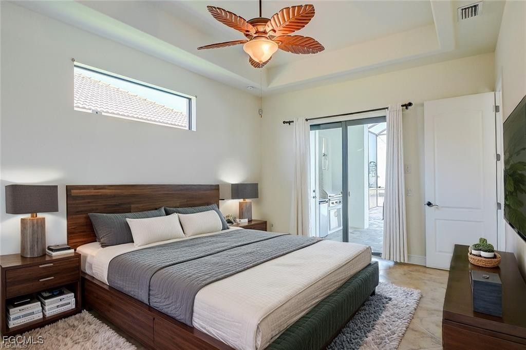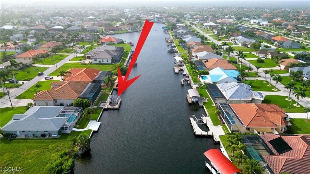 This stunning property features a three-car garage, gulf access on a 200ft canal, and a generator operated on a 500-gallon propane tank. The property also includes a 10,000lbs boat lift, a brand new HVAC system, and has been recently repainted inside and out with updated fixtures. The beautiful outdoor kitchen boasts a large pool and fountain, creating a seamless transition between indoor and outdoor living. Additional features include extra storage and numerous upgrades. The property's location provides easy access to Cape Harbor Marina and Cape Coral's best dining options, with shopping and recreational activities nearby.