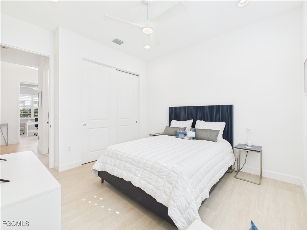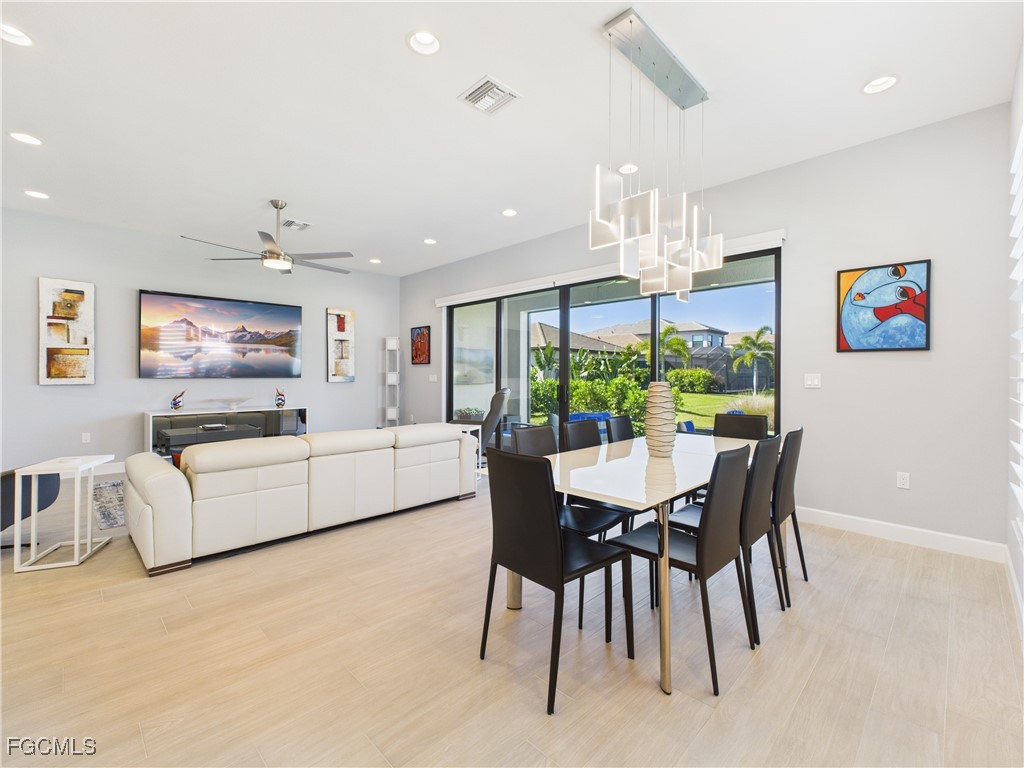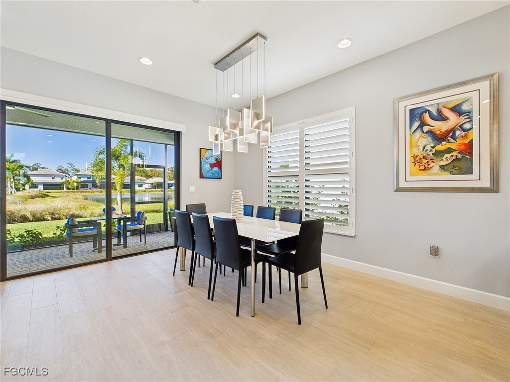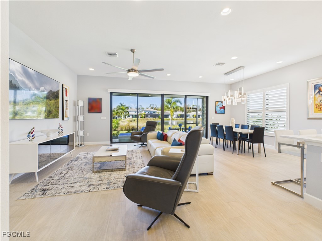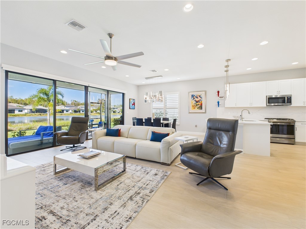 Welcome to this stunning lakefront home, built in December 2023 by award-winning GL Homes, located in the highly sought-after Corkscrew Corridor. This single-story residence offers 3 bedrooms + den (or optional 4th bedroom), 3 bathrooms, Impact-resistant windows and doors for peace of mind and provides 2,135 sq. ft. of living space with a 2-car garage. Beautiful upscale furnishings are negotiable. Designer upgrades throughout. New high-end lighting, fans, plantation shutters, fresh interior paint and tile plank flooring for a contemporary cohesive look. Quartz countertops make the chefs kitchen a delight along with 42" white shaker cabinets and stainless-steel appliances. Natural gas house w/oven, dryer, and hot water heater for efficiency and performance. Volume ceilings and tall doorways create an open and airy feel. New Kohler one-piece toilets, master bath fixtures, and frameless shower door. Custom closet cabinet systems in owner closets and remote-control solar shades in the living room. New epoxy garage floor for durability and style, tile roof, paver driveway and screened lanai with mounted 55" Smart TV. New landscaping enhances curb appeal and plenty of room in the backyard for a pool (see virtual picture). Ring-style Doorbell and Security System. Community & Amenities (opened in December 2024): Located in a gated community of only 554 homes. Residents enjoy low HOA fees and an unmatched amenity package: Walk to the 12,000 sq. ft. clubhouse with indoor sports complex (basketball, fitness, yoga studio, billiards, card/game room, catering kitchen, lounge, meeting room). Resort-style pool w/cabanas, 6 lighted pickleball courts, 4 lighted tennis courts, bocce ball, outdoor basketball, playground, splash park, firepit, picnic area & sidewalks throughout for easy access to amenities, lawn care, irrigation, exterior pest control, and 24/7 security included. This home combines luxury finishes, modern convenience, and resort-style living in one of Southwest Florida’s most desirable locations close to: Miromar Outlets, Coconut Point, University Village, Gulf Town Center, Florida Gulf Coast University, Lee Health Hospital, Public Golf Courses, Estero Park & Sports Complex, Walking Trails & Bike Paths. RSW AIRPORT & I-75 are just minutes away for easy access to the BAREFOOT BEACH, Fort Myers Beach, LOVER'S KEY and all that NAPLES has to offer! This is the perfect Primary and Vacation Residence or as a Seasonal or Annual Rental for Investors (no waiting period)! Pet Friendly (no weight or number of pets restrictions)!
