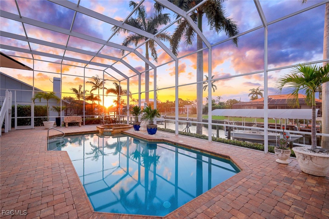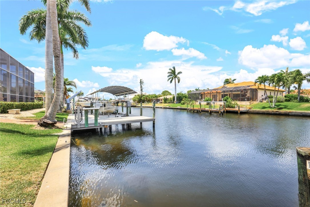 Exquisite Custom Key West Home with Deep Water Direct Access! Located next to the Tarpon Point area in SW Cape Coral, Unit 64. Discover your dream home in one of Cape Coral's most sought-after locations! This stunning custom-designed Key West residence boasts deep water direct access, perfect for accommodating larger boats. Key Features include panoramic views from the spacious upstairs living area, featuring impressive high cathedral ceilings and expansive windows that fill the space with natural light.The heart of the home showcases a beautiful updated Gourmet kitchen, equipped with a new commercial-sized refrigerator and modern appliances, ideal for entertaining.A real coral fireplace serves as a focal point in the living area, creating a warm and inviting atmosphere for gatherings with family and friends.The expansive primary bedroom offers stunning views of the pool and canal through large windows, providing a serene retreat. Step into a newly upgraded bathroom featuring a spacious walk-in shower with a top-of-the-line rain showerhead, a separate soaking tub, modern countertops, cabinets, and stylish lighting. The main living floor also includes a dedicated office/den space, perfect for remote work or study, along with a newly renovated powder room for guests. The outdoors is an Outside Oasis, overlooking the wrap-around dock that features electric capabilities and an 8,000 lb boat lift, allowing for seamless boating experiences. There’s also substantial room for expansion, ensuring that your aquatic adventures can be maximized. The oversized pool, spa, and newer outdoor kitchen, along with a spacious lanai, create an amazing environment for entertaining guests and enjoying sunny Florida days. Downstairs, you'll find a billiard room, a full pool bathroom, and two guest bedrooms with a Jack and Jill bathroom, making it an ideal space for hosting family and friends.