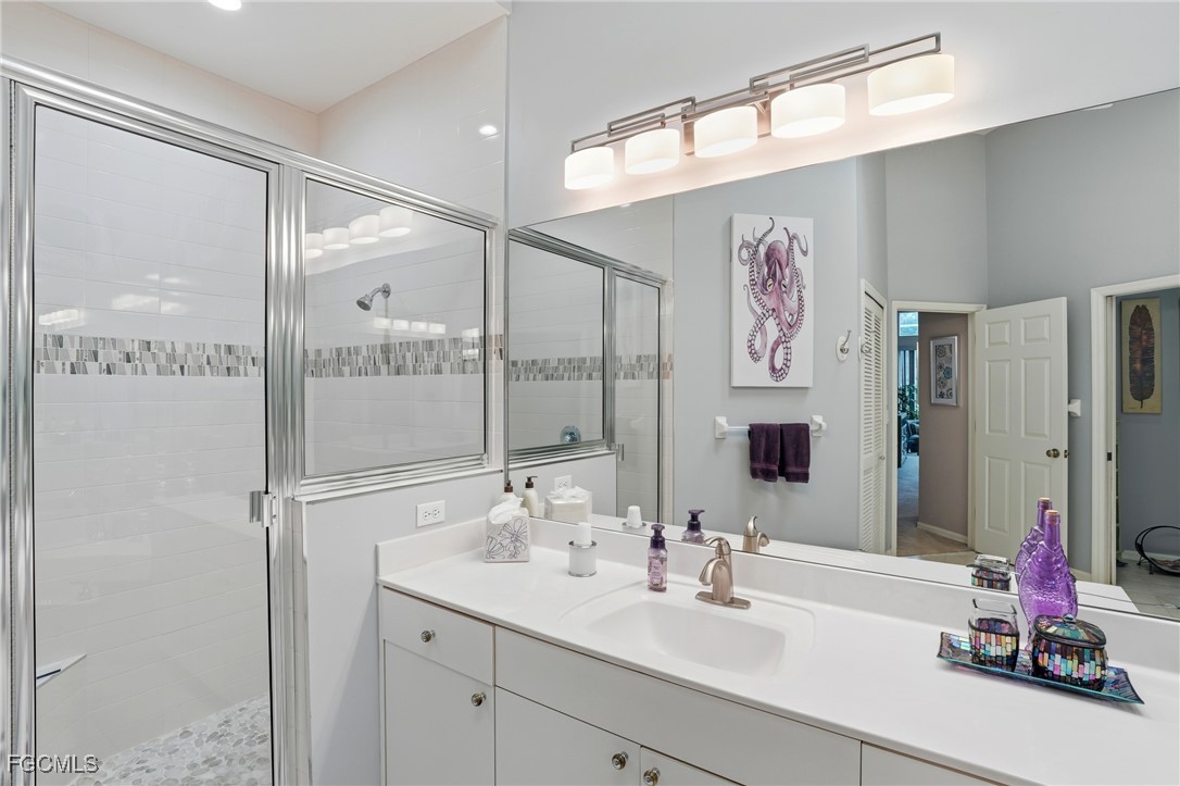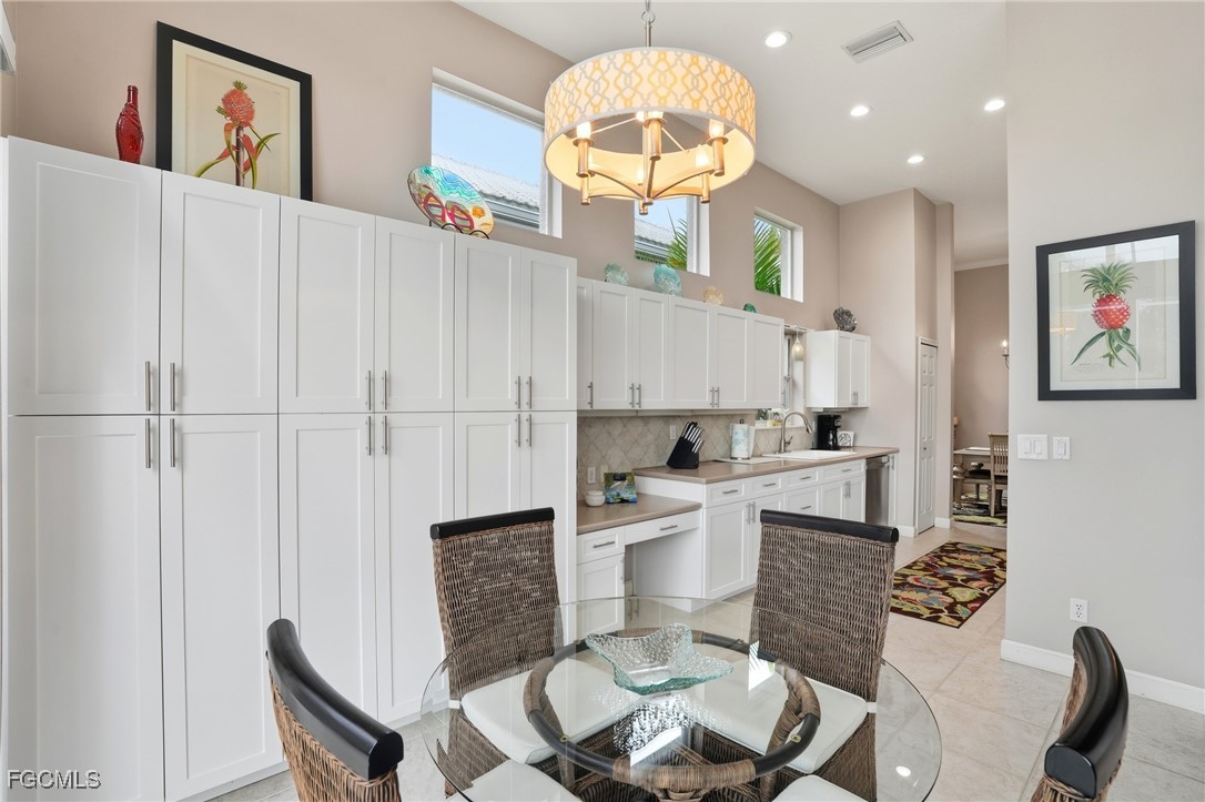 Step inside this beautifully maintained Brighton Model. This 2 Bed + Den, 2.5 Bath single-family home, in the sought-after gated community of The Vines, is offered TURNKEY and ready for new owners. It’s packed with upgrades including a BRAND NEW ROOF, HEATED SALTWATER POOL & SPA, NEWER HVAC, EPOXY FLOORS with OVERHEAD STORAGE and much more! With just under 2,200 sqft of living space, the thoughtful design welcomes you through a screened-in entryway and into a long, light-filled foyer with vaulted ceilings. The main living areas are finished with crown molding, tile, and carpeted flooring, setting the tone for both comfort and easy maintenance. The formal dining room features an arched windowsill and chandelier, while the living room showcases a transom window above the sliders for added natural light. The kitchen is both stylish and functional with solid-surface countertops, extended white cabinetry with under-cabinet lighting, stainless steel appliances, and a pantry. A cozy breakfast nook overlooks the sparkling pool and spa, blending everyday convenience with resort-style views. The primary suite is a retreat of its own, complete with plush carpet, two sliding glass doors to the lanai, and a large walk-in closet with built-in cabinet storage. The spa-like bathroom features dual sinks, a soaking tub, a walk-in shower, and two skylights that fill the space with natural light. The guest suite is tucked away at the front of the house and separated with a pocket door for added privacy. The room offers bay windows and a spacious closet, while the bath showcases a walk-in shower. The den with French doors serves as a versatile space, currently set up as a guest bedroom with two twin beds across from the half bath. The laundry room with a utility sink and cabinetry adds practicality, while the garage’s epoxy floors and overhead racks provide functionality and storage. Step outside to your private screened lanai, where the heated saltwater pool and spa overlook peaceful lake views and the 12th hole of Estero Country Club, offering the perfect setting for both quiet mornings and evenings of entertaining. Ideally located near Coconut Point, Gulf Coast Town Center, Miromar Outlets, RSW International Airport, FGCU, beaches, shopping, and fine dining, this home is positioned for both lifestyle and convenience. Life at The Vines offers more than just a home - it’s a lifestyle. This gated community is celebrated for its welcoming atmosphere, pristine grounds, and the rare benefit of NO WAIT LIST for golf memberships. Residents enjoy a wide range of amenities, including a championship 18-hole golf course (with golf membership optional), active tennis and pickleball programs, bocce courts, a fully equipped fitness center, and a vibrant clubhouse that features casual and fine dining along with year-round social events. Schedule your private showing today and discover why this home at The Vines is the one you’ve been waiting for!
