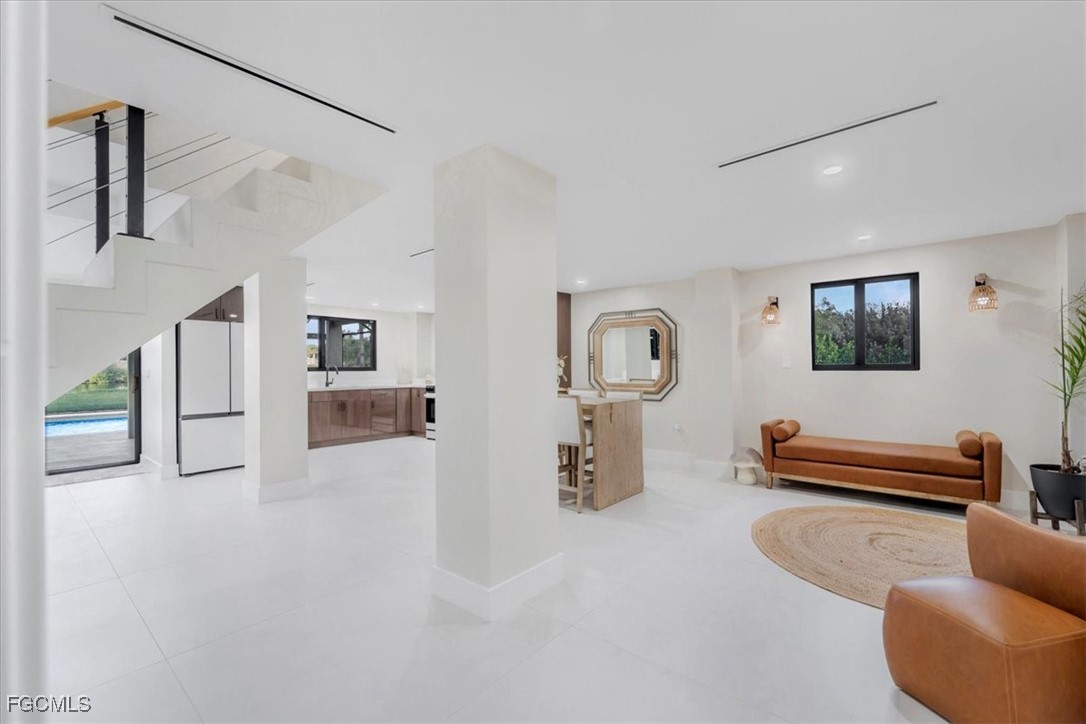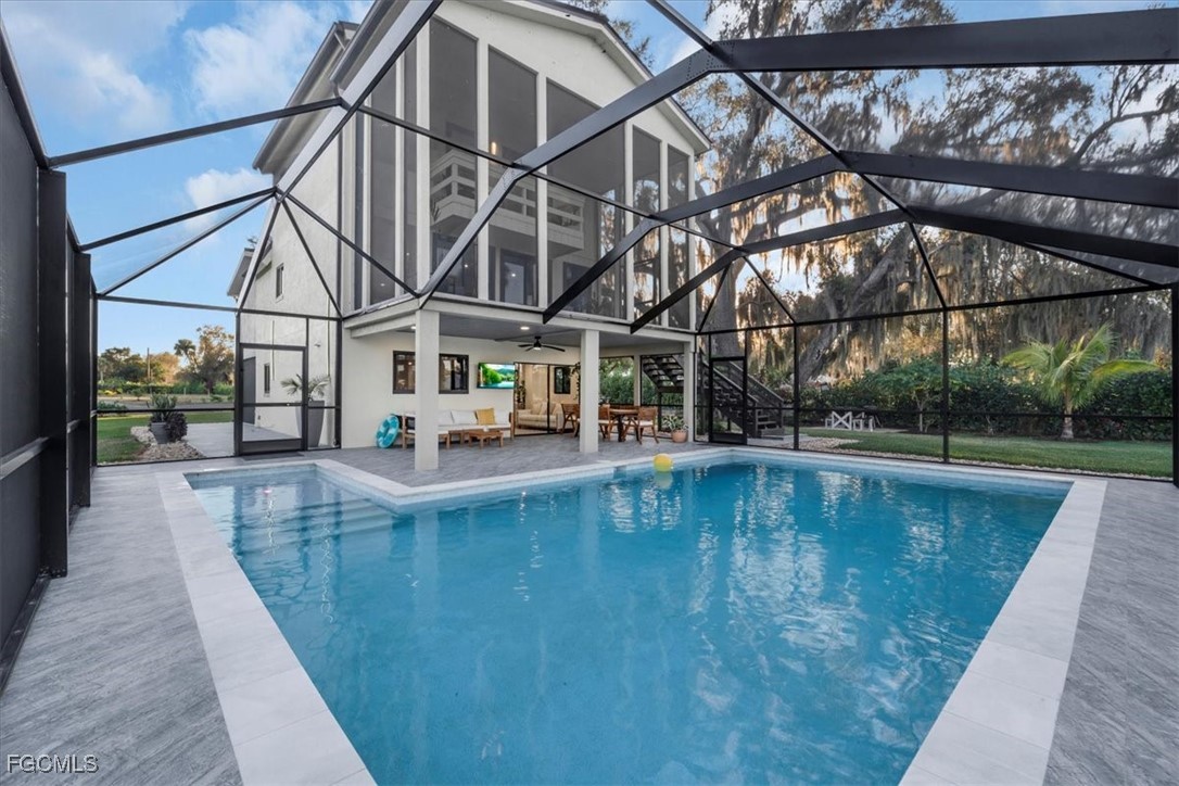 Purposefully designed to capture the breathtaking sunrises & sunsets that define SWFL living! This contemporary waterfront estate makes a true architectural statement. Situated on 1.36 oak-covered acres, the home embraces its natural surroundings while offering refined luxury with the most recent upgrades.