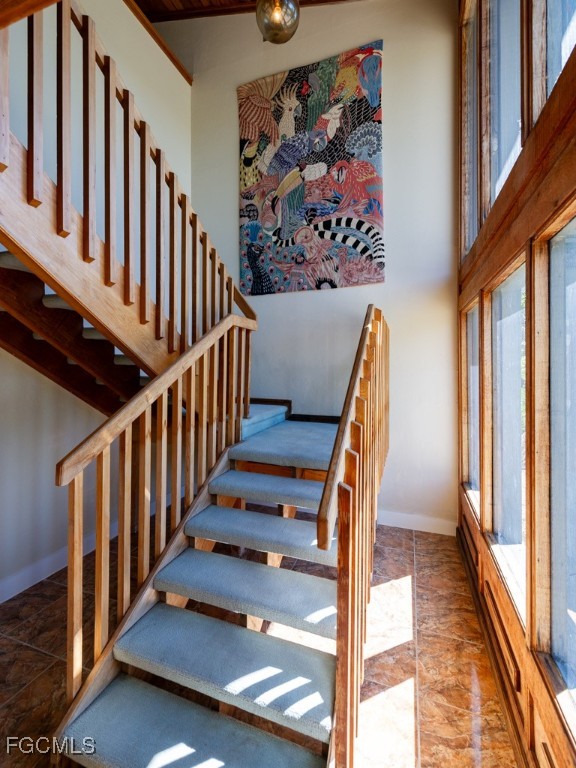 From the moment you arrive, you’ll appreciate the charming curb appeal framed by swaying palms and coastal landscaping. A private elevator provides convenient access between levels, making daily living and entertaining effortless. Inside, the home features a spacious, light-filled layout with multiple living areas designed for both comfort and versatility. Large windows invite natural light and showcase serene views of the surrounding preserve, creating a peaceful indoor-outdoor connection throughout the home.