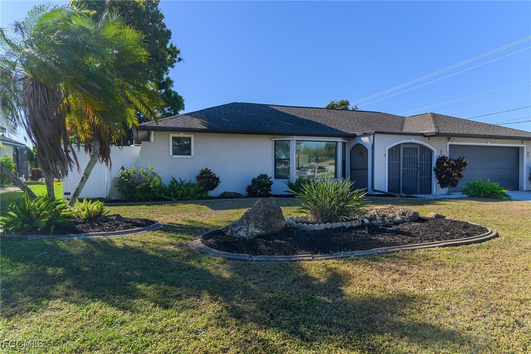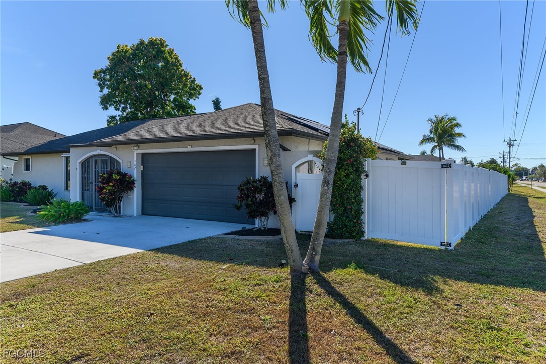 Waterfront Living at Its Finest in SE Cape Coral! Welcome to this beautifully renovated Gulf-access pool home, where style, comfort, and boating lifestyle come together seamlessly. Designed for effortless Florida living, this move-in-ready residence features impact-resistant doors and windows throughout and energy-saving solar panels for enhanced efficiency and lower utility costs. The updated kitchen shines with modern finishes and a breakfast bar that flows into a spacious dining area and vaulted living room. Custom built-ins in both the living room and primary suite add elegance and functionality, while the primary bedroom also boasts a designer custom closet. Step outside to your private waterfront retreat — a huge covered lanai overlooking the refinished pool, lush mature landscaping, privacy hedge, fenced in yard and even your own mango tree. With a dock and boat lift, sunset cruises and quick Gulf access are part of your daily routine. Recent upgrades include a new roof (2017), AC and water heater (2021), fresh interior and exterior paint. The oversized garage offers two full walls of built-in cabinetry for exceptional storage. This is more than a home — it’s the Cape Coral lifestyle you’ve been waiting for.