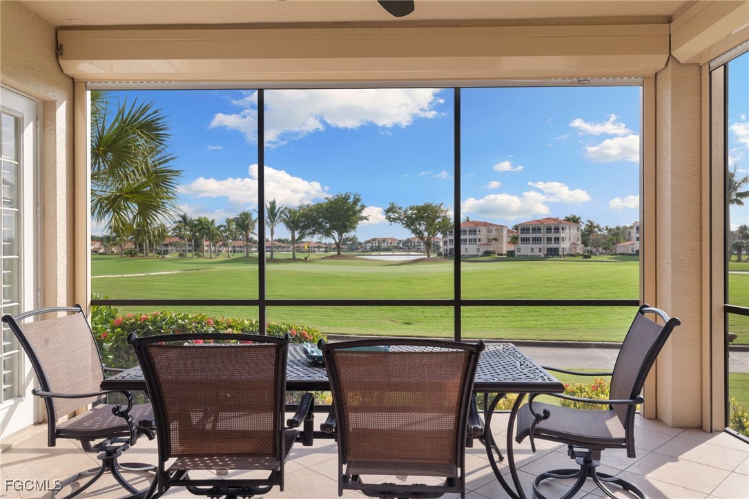 Inside, the thoughtfully planned layout features entry on the first floor, a formal dining room, and expansive windows—including double-hung and sliding windows—that frame serene golf course views. The living spaces flow effortlessly to the outdoors, where a screened patio and porch provide the perfect setting for morning coffee or evening relaxation, complete with a ceiling fan for added comfort.