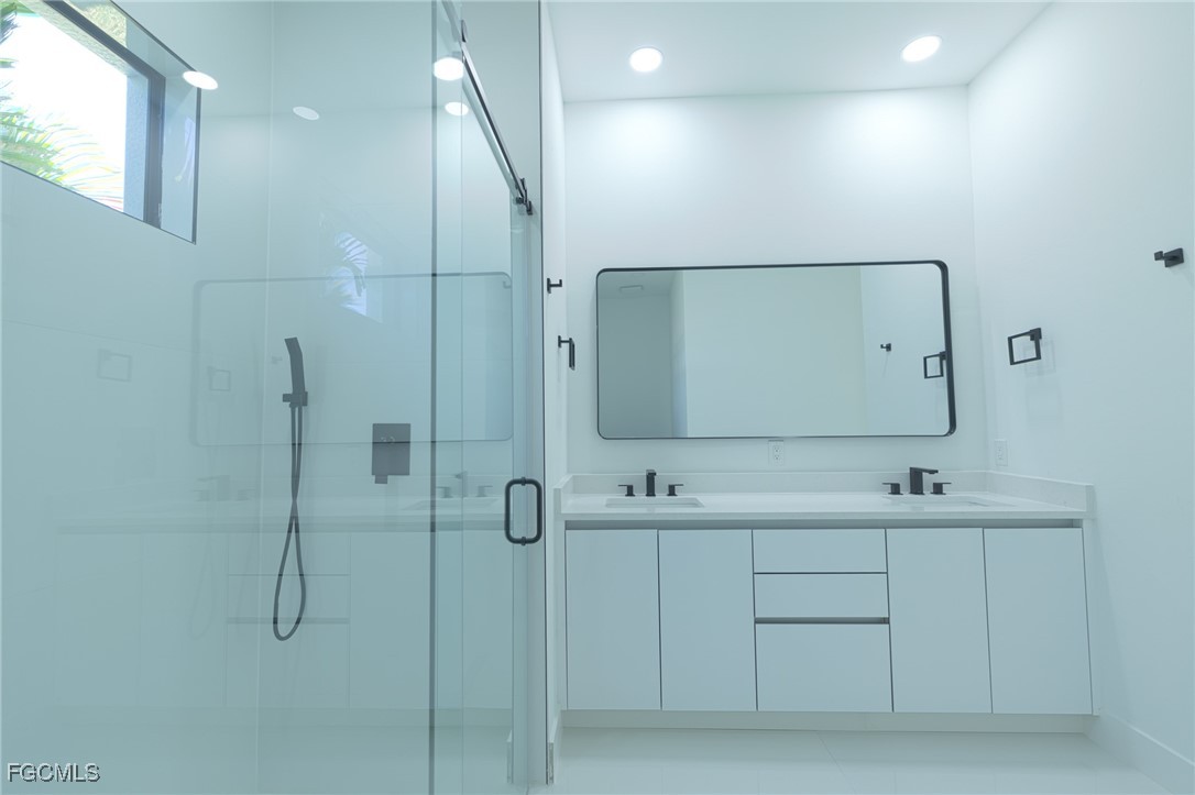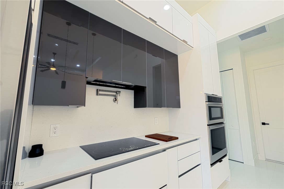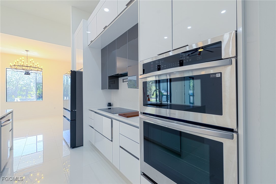 The stylish kitchen includes stainless steel appliances, modern cabinetry, and a large quartz island, perfect for everyday living and entertaining. Contemporary porcelain tile flooring runs throughout the home for a sleek, low-maintenance finish.