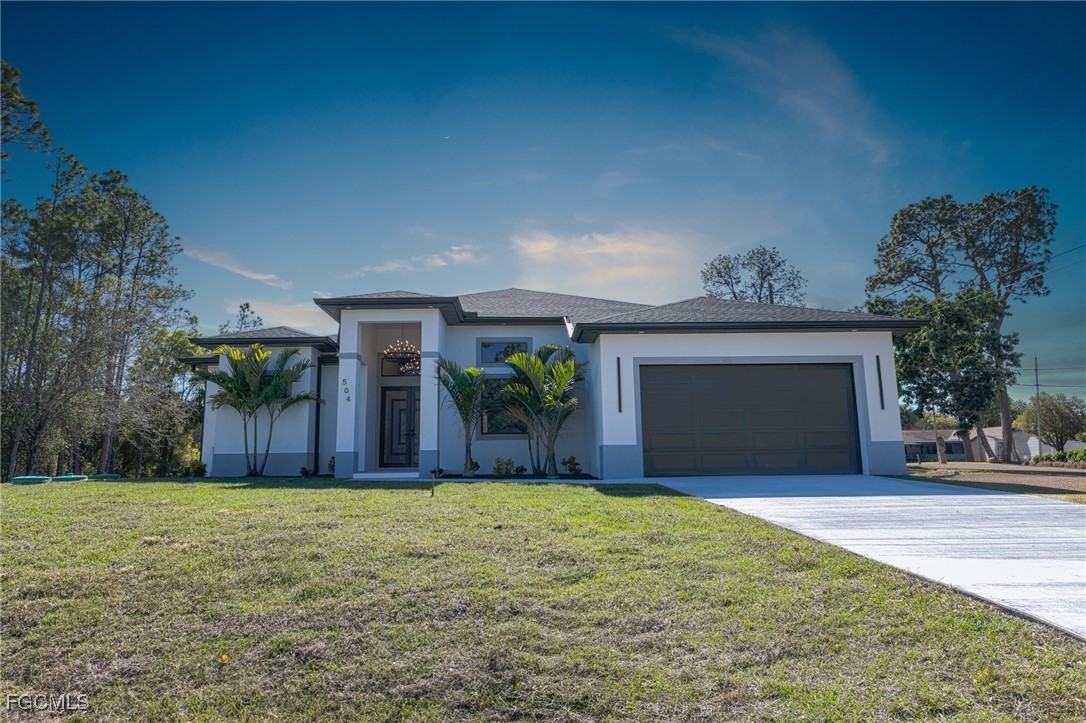 Beautiful new construction home offering exceptional value in Lehigh Acres. This modern 4-bedroom, 3-bath residence in 0.50 Acres. features 1,916 sq. ft. of living space and 2,973 total area. with an open and functional layout. The home welcomes you with high ceilings, impact-rated windows and doors, and abundant natural light throughout.