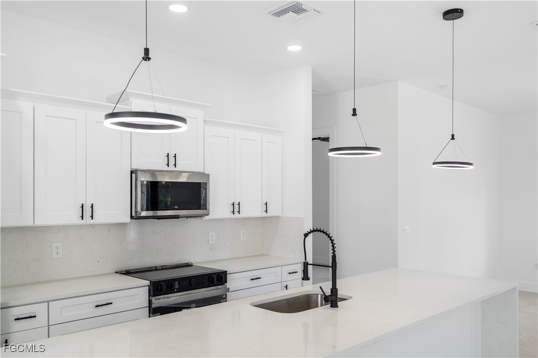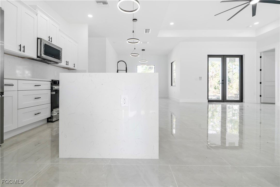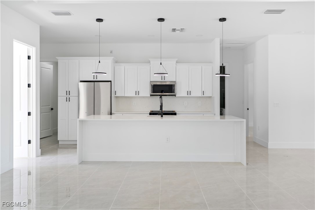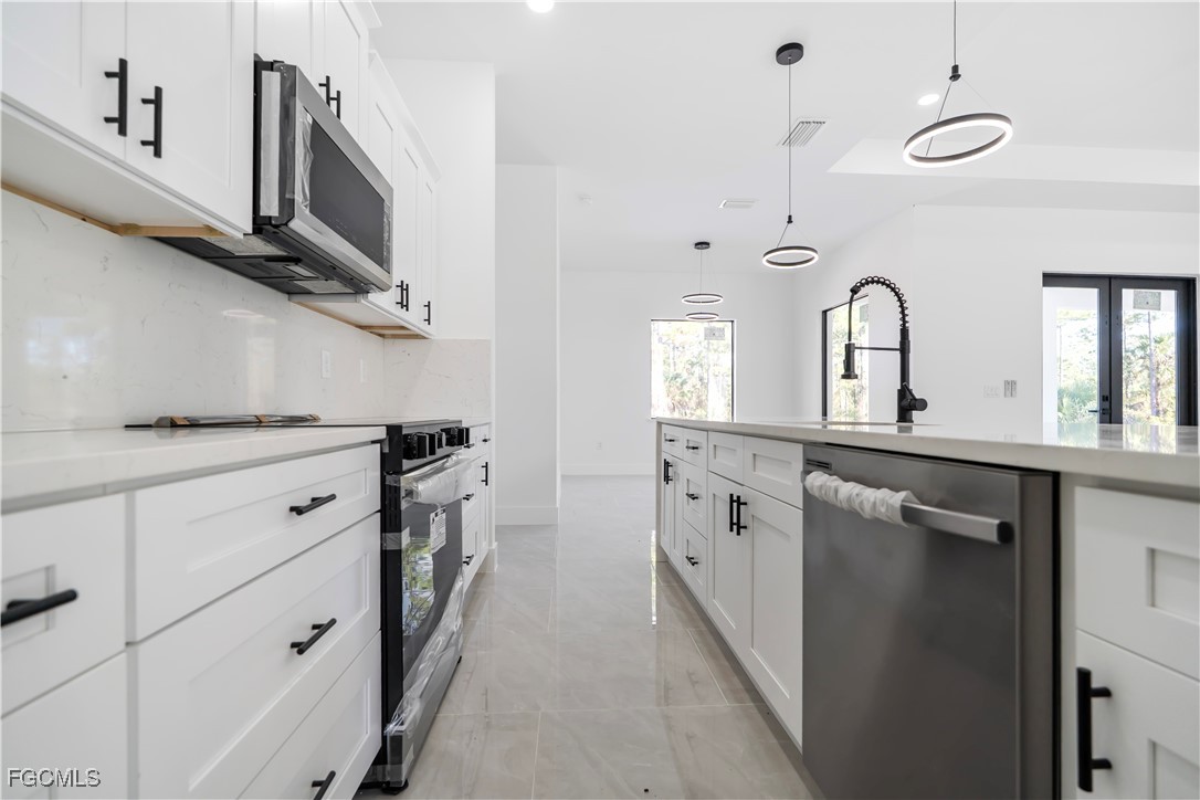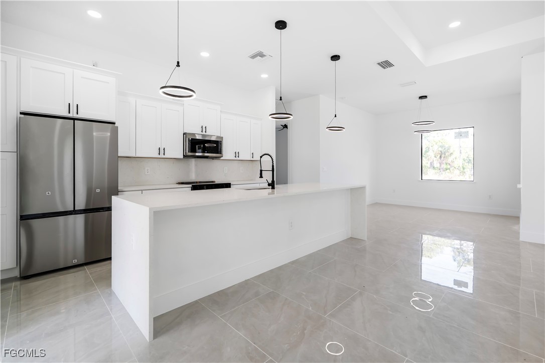 Beautiful brand-new construction located in Lehigh Acres. This modern single-family home offers an open-concept floor plan with high ceilings, impact-resistant windows and doors, and quality finishes throughout. The spacious primary bathroom features a luxury shower with multiple shower heads. Tile flooring throughout, central electric cooling and heating, and a well water system. No HOA and no restrictions. Conveniently located near main roads, shopping, schools, and dining. Ideal for primary residence or investment.