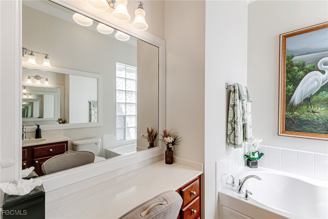 Village Walk is a gated community with a centrally located Town Center offering on-site dining, resort-style and lap pools, a fitness center, tennis and pickleball courts, post office, hair salon, community gas station, and miles of walking paths and bridges. Conveniently located near I-75, with easy access to shopping, dining, beaches, North Naples, and Southwest Florida International Airport.