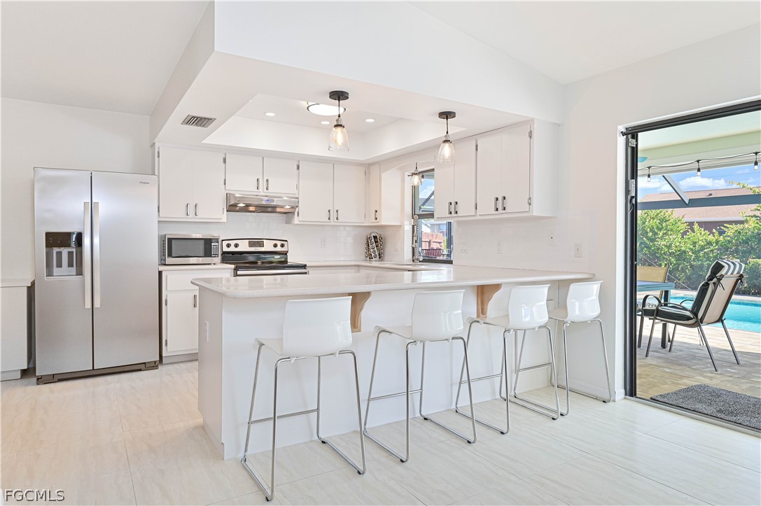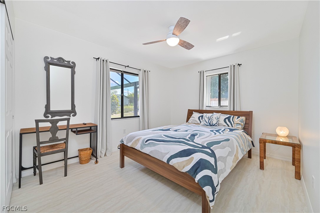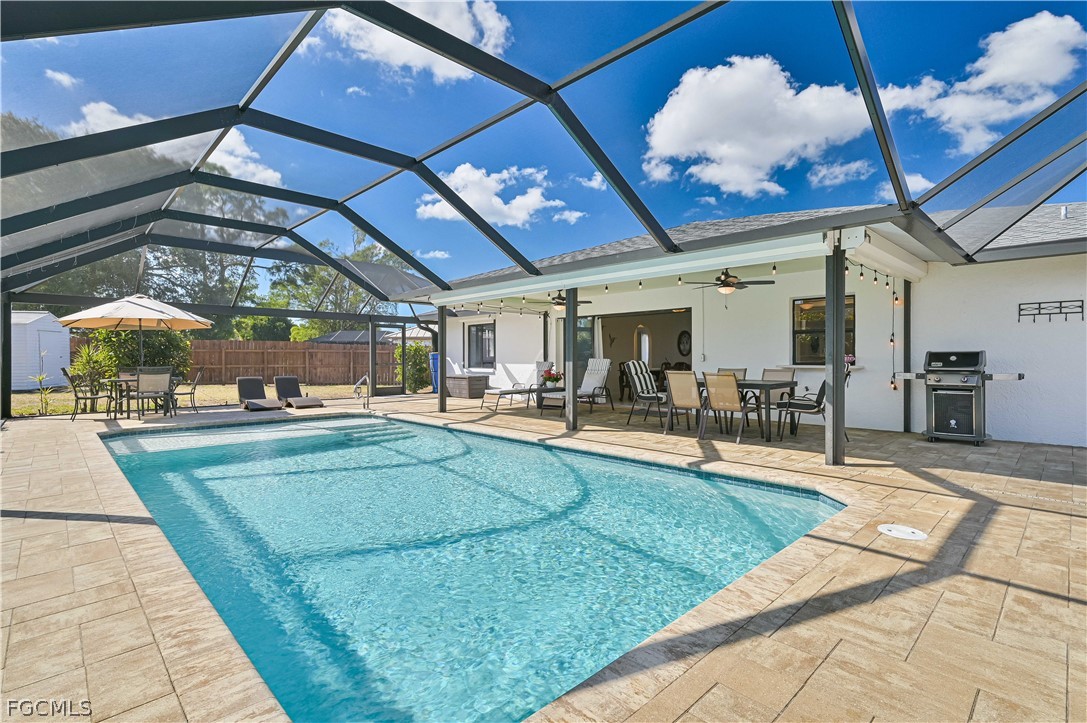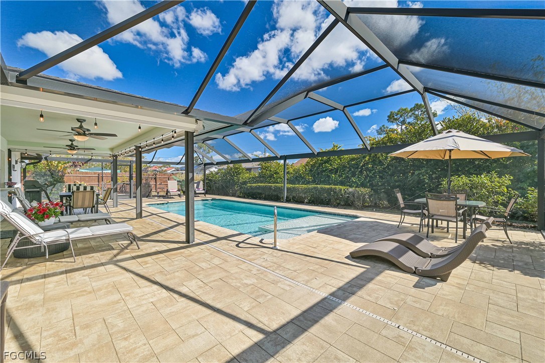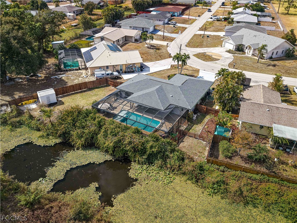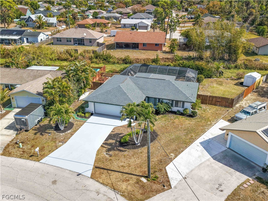 Stunning POOL HOME ready for you to move right in and enjoy!! Excellent location minutes from beaches, airport, FGCU, shopping, dining, entertainment and right around the corner from a golf course! Light, bright, clean as a whistle, and well-maintained with major items already done for you! NEW ROOF & Garage Door in 2023!! Pool Renovation and new pool cage with picture window panels in 2020!! New Water Heater 2021! AC replacement 2019 with all new HVAC ducting in 2025! Accordian Shutters on windows and Roll-down shutters surrounding the covered portion of Lanai! Gorgeous Tile throughout the entire home! Brand new stainless steel Refrigerator, Dishwasher and Range Hood! Updated Kitchen Countertops! Extra Storage and desk area in kitchen providing extra work space! Updated Primary Bathroom! All of the huge Lanai Paver area has just been cleaned, resanded and sealed! Back yard is privacy fenced, has a shed, and sits along a pretty and serene canal. NO HOA!! City water!