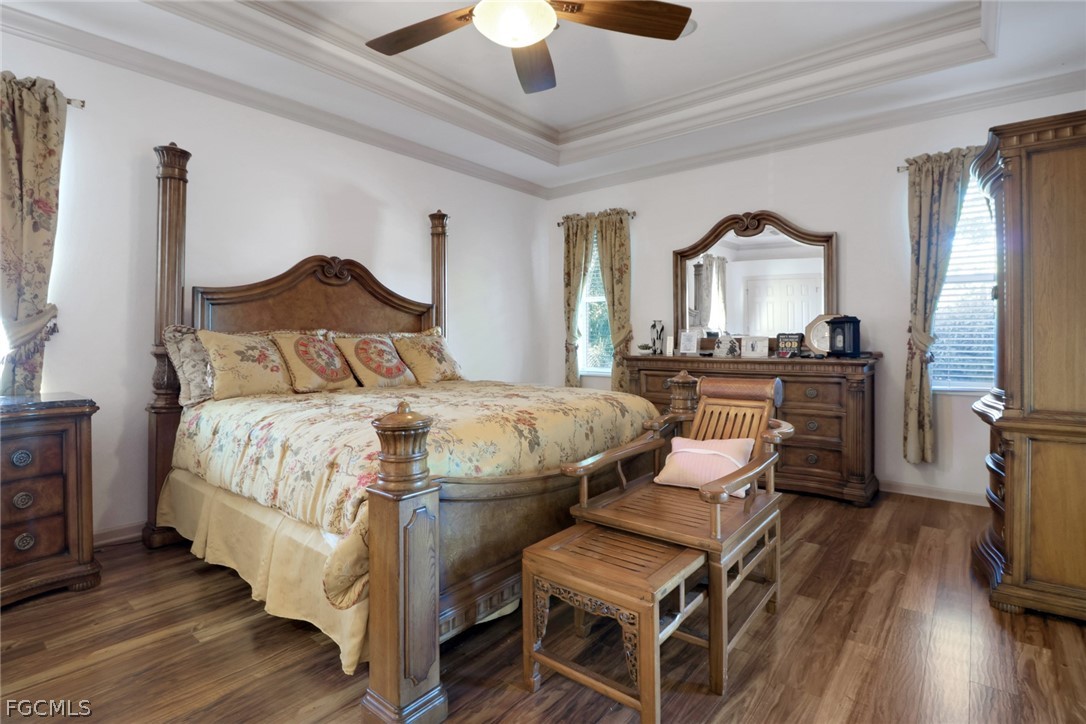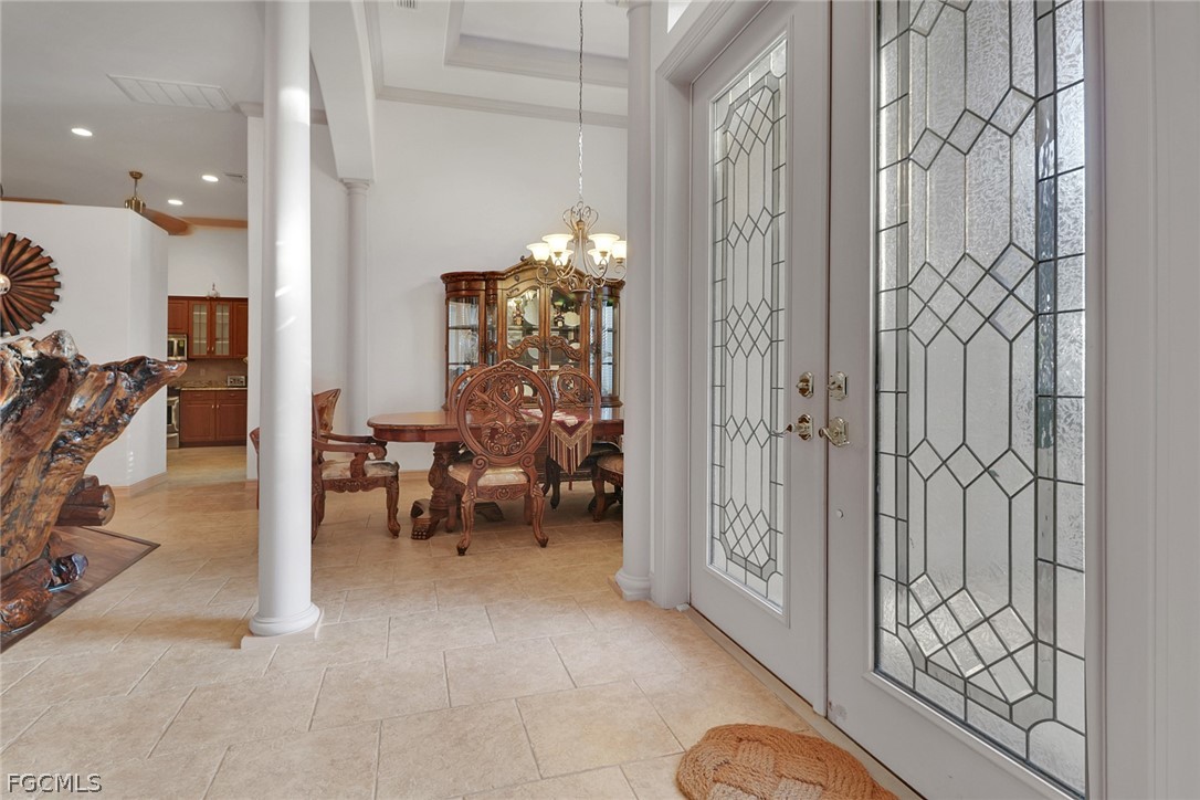Price reduction on this 2,943 sf two story concrete block stucco home in a beautiful highly maintained and desired neighborhood. Three bedrooms downstairs, each with their very own full bathroom and very own walk in closets, also a fourth large loft/bedroom/bonus room upstairs with its own full bathroom and walk in closet, and a balcony to view the beautiful Florida sunrises and sunsets. Also a downstairs office/den with French doors that can be a fifth bedroom. Dining room has a 14 ft ceiling with mood lightning in the stunning tray ceiling. Also a separate dining area off of the kitchen with a large view of the pool, lanai and yard. The living room has 12 ft ceilings with large built in shelving. A high end crystal chandelier dazzles above. Inlay engineered tile and hard wood flooring in the living room. Soaring tray ceilings and crown molding throughout the home. The large primary bedroom has tray ceilings, two closets, one with built in shelving/organizers, French door to the lanai/pool. Primary bath has dual sinks, spa jacuzzi tub, and dual shower heads. Well-appointed kitchen with plenty of cabinetry, counter space, breakfast bar, central island working space, recess lightning and self cleaning convection oven with a generous walk in pantry. Stunning glass double entry doors. Beautiful outdoor concrete pool with heavy duty plumbing in 2023.Convenient 1/2 pool bath in pool/lanai area and three doors leading to the pool/lanai. A three car garage with paver driveway. Nice architectural details throughout the home and a surround sound system. Has only been owned by one family and well maintained. Perfect for a family, vacation home or investment property, no HOA. Not a far drive from top-rated schools, entertainment, dining, shopping and Sands Park. Interesting architectural details throughout the home. A 16 seer 5 ton Rheem system unit Dec 2019/10 year warranty. Fan replaced 2024.House wired for security system. Beautiful tile roof. Automatic lawn irrigation system. Beautiful curb appeal with tropical Christmas palm trees and Canary date palm trees line the street. Mature lush landscaping, manicured bushes. Backyard has avocado, mango, and papaya trees and a Maranga tree. Offers luxury and comfort for the ultimate Florida lifestyle. Stunning lighting around the home for a relaxing peaceful appearance. Furnishings are negotiable.