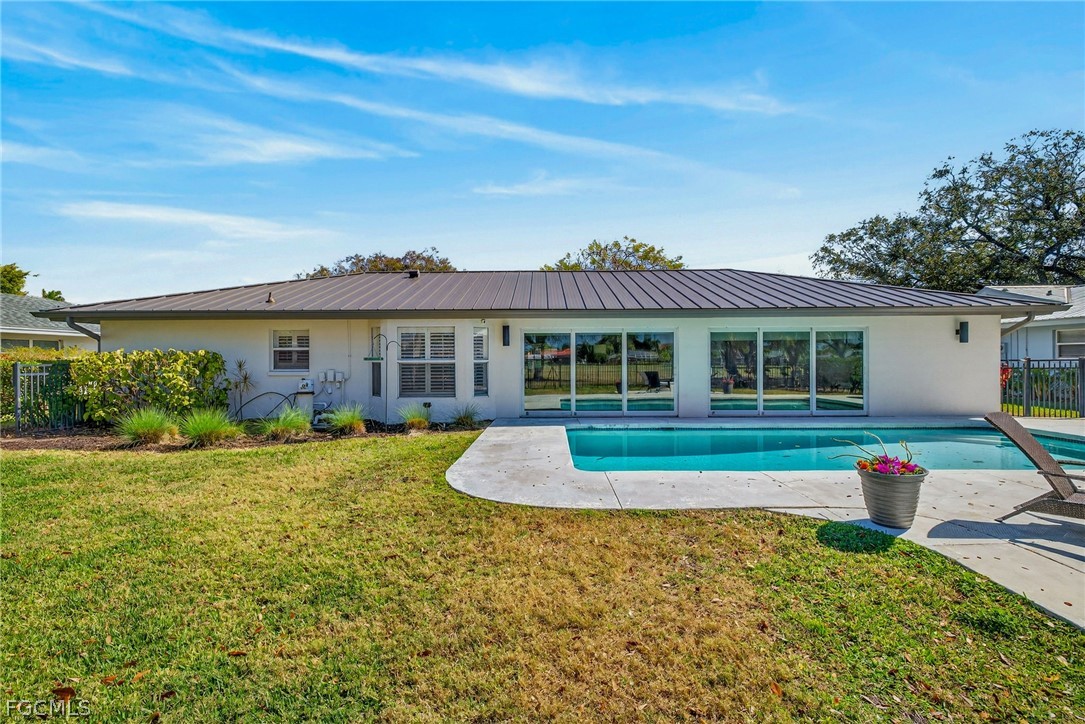 Beautiful 3 Bedroom, 2 Bath Plus a Den, POOL HOME with a GOLF COURSE VIEW, located in the highly desired Whiskey Creek Community. This well-maintained home features a METAL ROOF, a completely remodeled kitchen and butler’s pantry with granite counters and new stainless appliances, a formal dining room, breakfast room & large living room, the primary suite has a bedside view of the pool and golf course with an en-suite with a custom shower and walk in closet. This home is equipped with many upgrades like Impact sliding glass doors, crown molding, plantation shutters, wood floors and a wine or coffee bar area. The outdoor space is spectacular with a salt-water pool, fire pit area, fenced-in yard and golf course view. There are many newer items that include Metal Roof 2023, Water heater 2023 and Kitchen appliances. If you love to golf, make this your home, just bring your golf cart. It is conveniently located near shopping, restaurants, entertainment, hospitals, Jet Blue baseball stadium, and a short drive to downtown Fort Myers and the white sandy beaches of Sanibel and Fort Myers Beach.