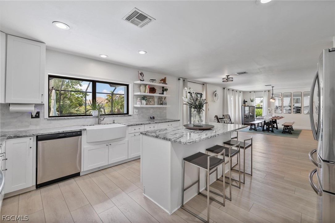 This home is VA assumable with a low interest rate, located in Flood Zone X—no flood insurance required—and offers low HOA fees. Welcome to Burnt Store Lakes, a vibrant community known for its scenic beauty, abundant wildlife, and endless outdoor recreation. Fully remodeled and thoughtfully upgraded, this rare gem blends modern elegance with prime access to eleven freshwater lakes, expansive greenbelts, and the natural charm of Charlotte Harbor and Burnt Store Marina.