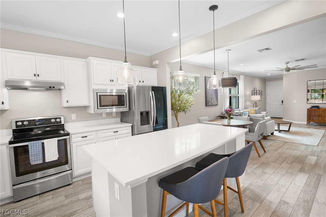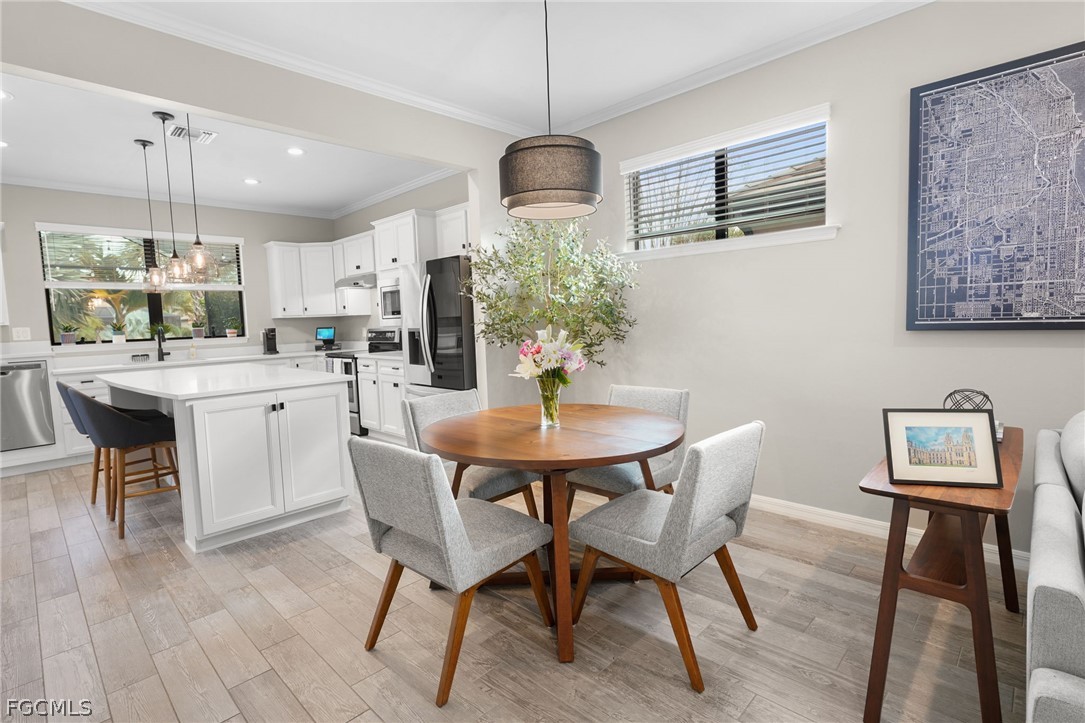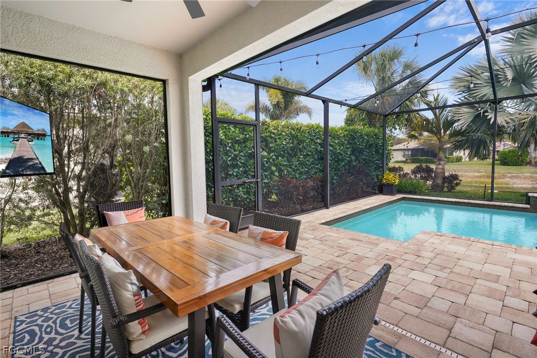 Did you think a beautiful pool home was out of reach? Think again. Experience refined Florida living in this impeccably maintained 2-bedroom + den, 2-bath residence, built in 2017 and perfectly positioned on a quiet cul-de-sac within an exclusive gated community. Offering modern open-concept design and exceptional upgrades throughout, this home seamlessly blends comfort, elegance, and privacy. Step inside to discover a freshly painted interior enhanced with crown molding, updated hardware, designer light fixtures, new faucets, and contemporary ceiling fans. The thoughtfully designed split-bedroom floor plan ensures maximum privacy, while the versatile den provides the flexibility for a sophisticated home office, media room, or easily converted third bedroom. At the heart of the home, the chef-inspired kitchen features an expansive island ideal for entertaining, complemented by a full appliance suite including range, microwave, dishwasher, and refrigerator. The kitchen flows effortlessly into the spacious living and dining areas—perfect for gatherings both intimate and grand. Outdoors, your tropical paradise awaits. The screened-in lanai showcases a heated saltwater pool with tranquil water feature, all overlooking serene lake views. Unmatched Resort-Style Amenities: Residents enjoy a gated community with a grand clubhouse, state-of-the-art fitness center, two luxury-style pools, spa, tennis, pickleball and bocce courts, fire pit, tiki bar, BBQ area, and scenic sidewalks throughout. Optional membership to the nearby Summerset Golf Course—its sister community—further enhances the lifestyle with expanded social and sporting opportunities. Prime Southwest Florida Location: Conveniently located just 16 minutes from Southwest Florida International Airport in Fort Myers, and moments from premier shopping and dining including Miromar Outlets and Whole Foods Market. Fine restaurants, malls, and everyday conveniences are all within easy reach. This exceptional property offers the perfect balance of luxury, security, privacy, and accessibility—an extraordinary opportunity to embrace the very best of the Southwest Florida lifestyle.