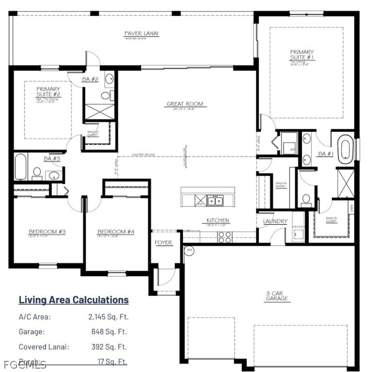 Two primary suites offer flexibility and privacy—ideal for multi-generational living or hosting guests. A three-car garage provides ample storage, while energy-efficient construction and hurricane-ready features deliver long-term peace of mind.