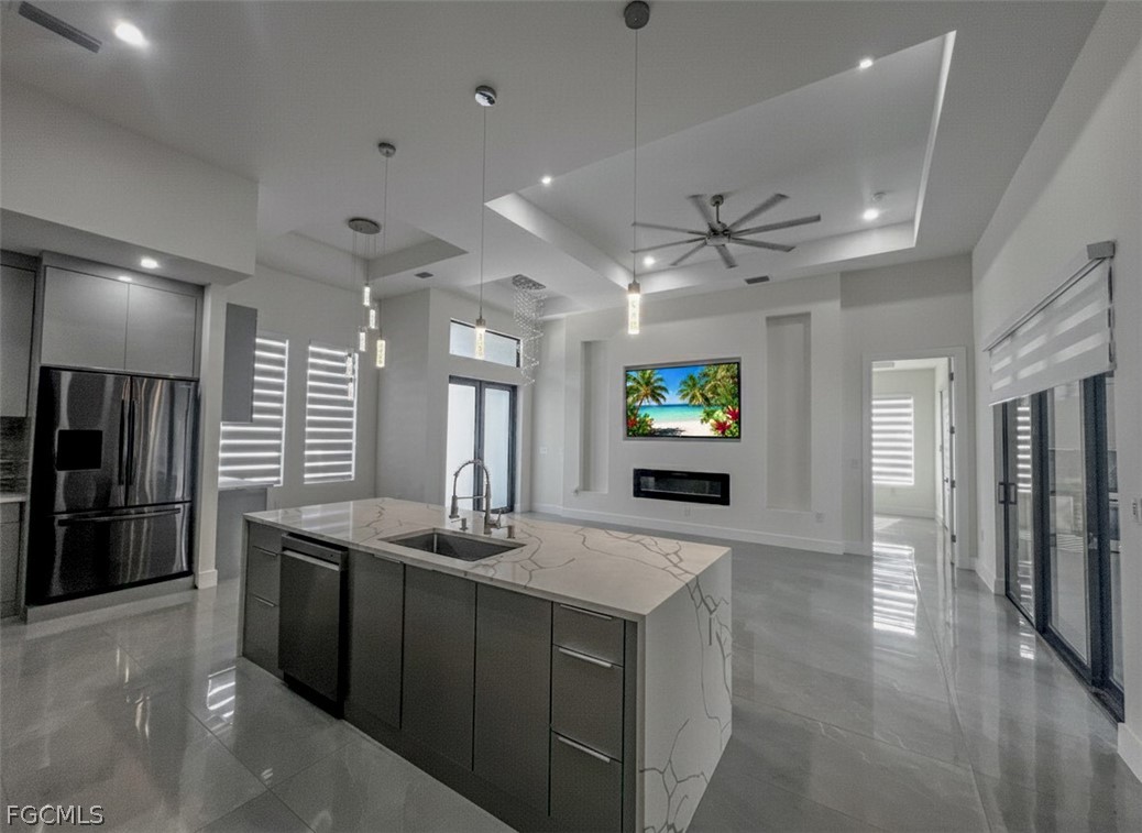 Welcome to this stunning HOME nestled on 0.64 acres, offering the perfect blend of style, comfort, and functionality. NO FLOOD ZONE. Inside, you’ll find elegant tile flooring throughout and a modern sophisticated color palette. The custom-designed kitchen features cabinetry, a coffee bar, and a dedicated entertaining bar area. His and hers walk in closets, modern blinds. Step outside to experience true Florida living. The expansive outdoor space includes a fully equipped outdoor kitchen, panoramic screened enclosure, and a beautiful 15x40 saltwater pool complete with an outdoor rinsing shower. Tiled garage with AC split offers multiple options, designated work space like office, gym, game room, kids playground etc, full bathroom for easy access. For added convenience, the property includes a tiled outdoor storage shed, plus an additional oversized shed ideal for boats, RVs, or extra storage. Enjoy the lush setting with fruit trees and abundant space to relax and savor the Florida lifestyle, fully fenced and gated for optimum privacy. DO NOT MISS THIS OPPORTUNITY.