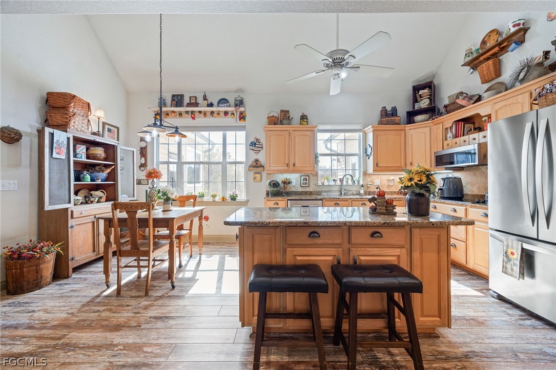 This impressive 4-bedroom, 3.5-bath, two-story residence offers comfortable living and thoughtful design throughout. Inside, you’ll find volume ceilings that create a bright, open feel, a well-appointed kitchen with a convenient breakfast bar, and a generous primary suite featuring dual sinks in the master bath. Additional interior highlights include a laundry tub and functional spaces designed for everyday ease.