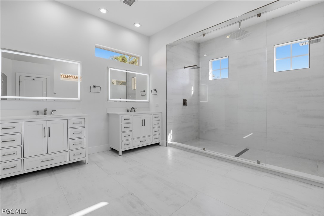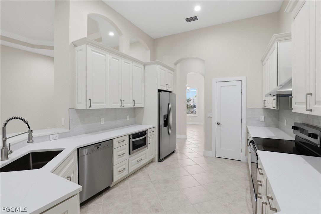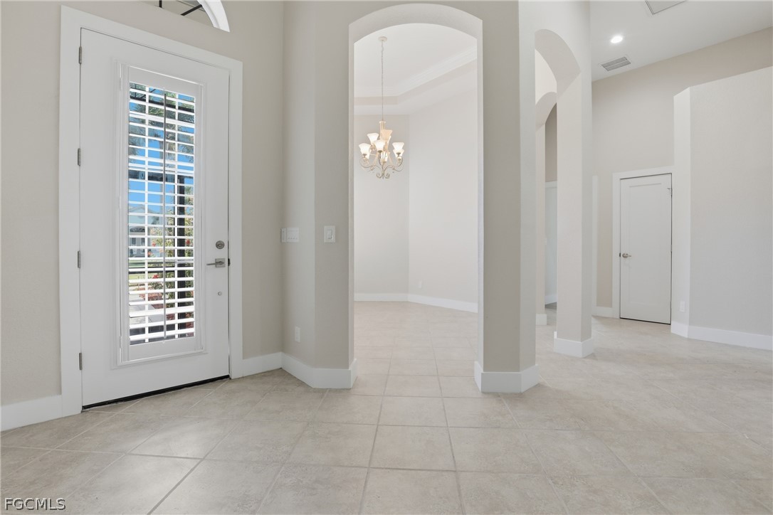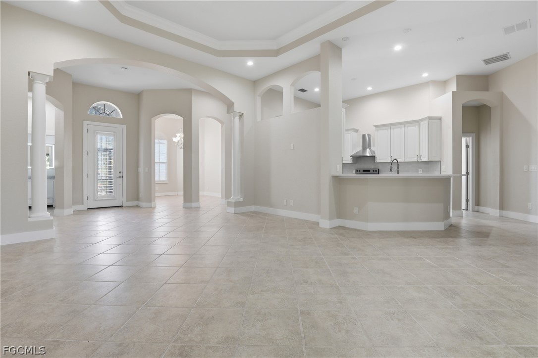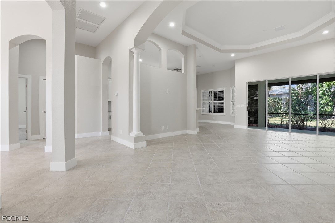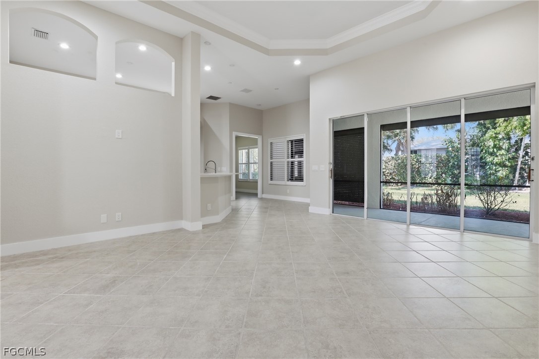 Beautifully renovated 4-bedroom, 2.5-bath home with private, lushly landscaped views in the desirable community of Coco Bay. This impeccably updated residence features 18-inch tile flooring, custom white Shaker-style kitchen cabinetry, stainless steel appliances, solid surface countertops, soaring ceilings, and detailed crown molding that create a refined yet comfortable atmosphere. The primary suite offers a spa-like retreat with extensive wall tile, a freestanding double-ended soaking tub, an expansive walk-in shower with multiple shower heads, separate vanity area, and elegant back-lit mirrors. Designed for both everyday living and entertaining, the home showcases a spacious, light-filled layout where the kitchen opens naturally to the great room and dining space, all extending effortlessly to the lanai for seamless indoor-outdoor enjoyment. Coco Bay is a gated, coastal-inspired community known for its scenic surroundings and beautifully maintained homes. Residents enjoy access to a clubhouse, fitness center, resort-style pool and spa, and social gathering spaces. Ideally located within Kelly Greens and just minutes from area beaches and the world-renowned shores of Sanibel Island, this home offers the best of Southwest Florida living. All information recorded in the MLS is intended to be accurate but cannot be guaranteed, buyer advised to verify. Sold As-Is.