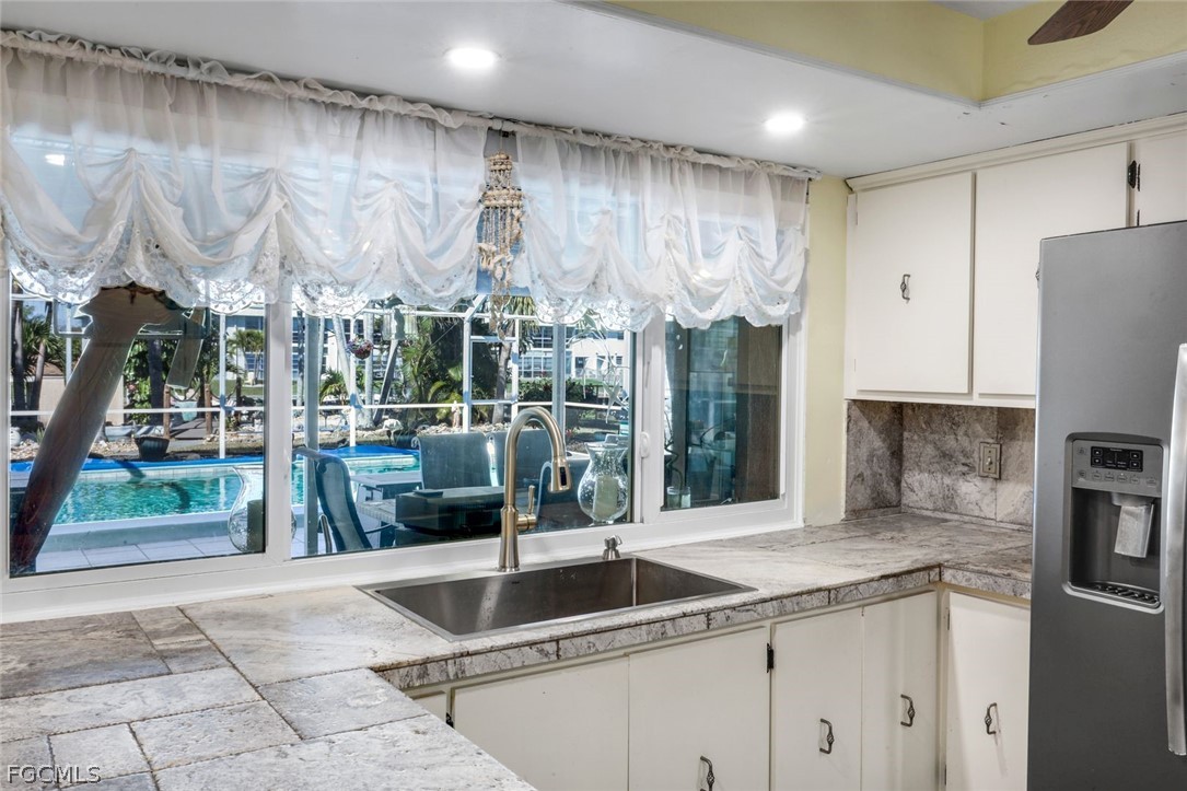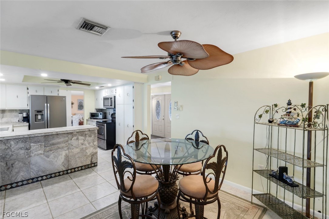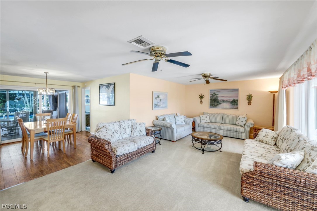 268' OF SEAWALL highlight this exceptional corner tip lot in Cape Coral’s highly desirable Yacht Club area, a rare and highly sought-after opportunity for boating enthusiasts and waterfront living at its finest. This 3 bed, 2 bath, 2car garage home offers 1,943 square feet of thoughtfully designed living space featuring separate living and dining rooms and a split-bedroom floor plan for added privacy and functionality. Impact-resistant windows and doors provide peace of mind while allowing natural light to fill the home. Step outside to an oversized pool area perfect for entertaining or relaxing while enjoying expansive water views, complemented by a serene koi pond and a charming old-school Florida “boathouse” currently used as a storage facility. Ideally located just moments from the upcoming new Yacht Club Community Park and Boathouse Restaurant, scenic bike and walking paths, and close to Cape Coral Parkway for convenient access to shopping, dining, and beaches, this property offers an unbeatable combination of lot size, location, lifestyle, and long-term value in one of Cape Coral’s most desirable waterfront neighborhoods.