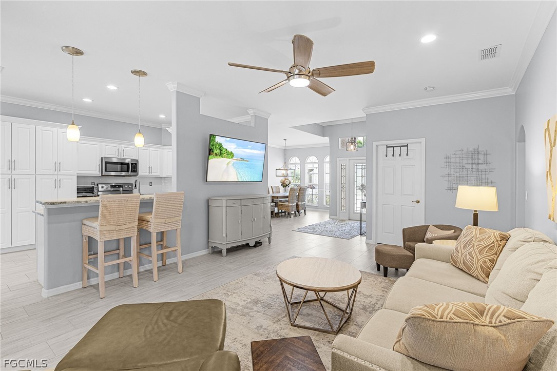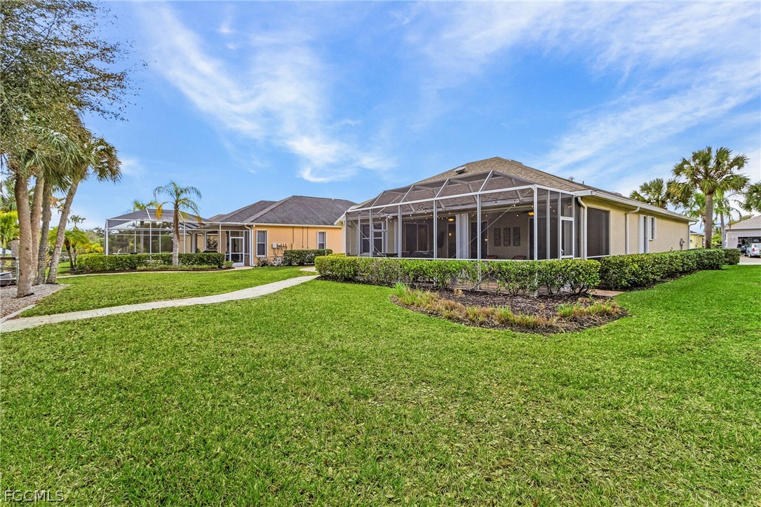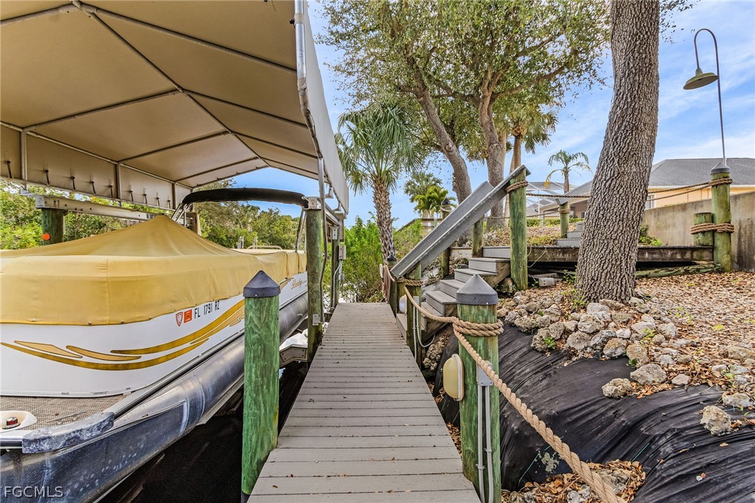Loved and well-maintained LENNAR built 3/2/2 home on GULF ACCESS canal, with private DOCK, covered 10000 lb LIFT and NOT IN FLOOD ZONE! This home is a boater's paradise and great for entertaining. Step inside into an open light filled space that has been thoughtfully designed and styled. High 10-foot ceilings, crown molding, upgraded light fixtures and fans, updated main and guest bathrooms, plank tile in main areas, neutral paint colors, cellular blinds on all sliders. With a formal dining area, breakfast nook, open concept living area, hosts can always be part of the conversation and entertain with ease. Open the set of oversized sliders and extend your living room to the outdoors! Take your party down to the dock with a sitting area and watch boats go by, or take everyone for a cruise from the convenience of your own dock and lift. It is about 20 min to the river, 50-55 to the gulf. Bright and open home, with ample storage inside and in the garage. Plenty of room for a pool. Roof is 2018, AC 2015, water heater is 2023, 2024 generator plug with by-pass, 2018 kitchen appliances and washer/dryer. Security system, remotely operated thermostat, solar operated vent in the attic are just some of the extra features on this home. Home comes with accordion storm shutters and storm glass on the front door. Amenities include clubhouse, heated pool, hot tub, tennis court, boat ramp/docks. Palm Island is a gated community, with resort style amenities, minutes to downtown Ft Myers and everything it has to offer. No CDD, county taxes only, no flood insurance required, LOW HOA fee of $285/mo covers yard maintenance, exterior pest control, mulching, edging, trimming and access to the amenities. About 30-40 min to RSW or PGD airport. Schedule your showing today and make Palm Island your permanent home or a winter escape!