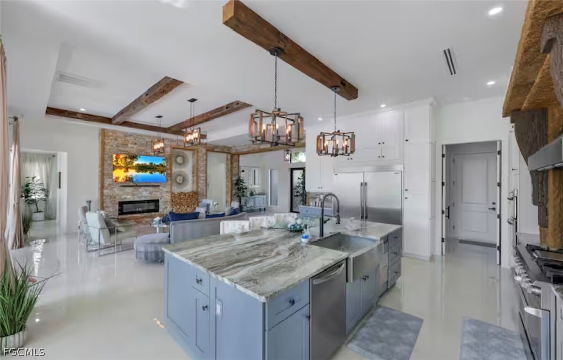 TURNKEY INVESTMENT OPPORTUNITY! Experience Southwest Florida living in this stunning built waterfront masterpiece, situated on an oversized .34-acre triple lot in one of Cape Coral’s most desirable locations. Designed as a high-performing short-term rental, this property is being offered as a fully furnished, turnkey Airbnb—ready to generate immediate revenue from day one. This architecturally striking home features soaring 15-foot ceilings, sleek porcelain tile, and high-end finishes throughout. The gourmet kitchen is a chef’s dream with 11-foot custom cabinetry, premium granite countertops, and a seamless flow into the grand living area.
