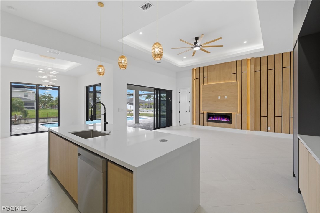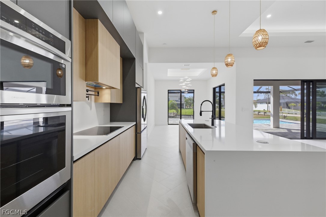 Spectacular modern residence with open concept and luxury finishes. Don't miss this opportunity to live in this beautiful newly built house located in the highly desirable area of Cape Coral, less than 5 minutes from Publix, Walmart, gas station, Target, shopping center. This amazing property located on the corner of the street has 4 bedrooms, 3 bathrooms, garage for 3 cars, high ceilings with 1931 s/f, MR-CLASS impact windows (the best of its kind in Florida) interior doors 8 feet high, indoor and outdoor kitchen, outdoor pool and a beautiful patio with screens with stunning views of the canal, modern appliances throughout the house, ceramic floors with unparalleled comfort in an open plan.
