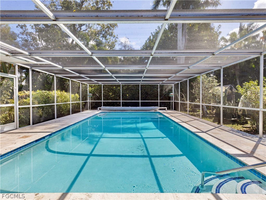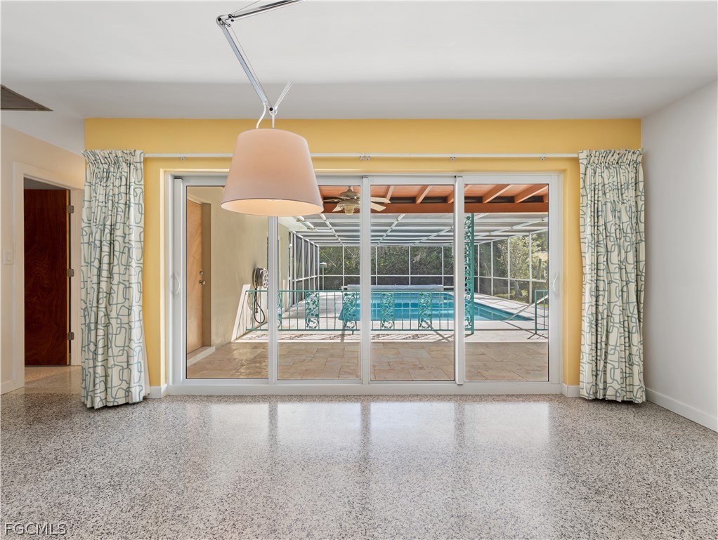 True mid-century architecture updated with thought and consideration to every detail while keeping with the iconic style of its time. Built in 1964 and offered for the first time in over 55 years, this 4-bedroom, 2.5-bath home sits on an extremely private tree-lined street in Old Fort Myers’ most desirable neighborhood. On Stuart Court you will enjoy that rare feeling of being secluded yet close to everything in an active and vibrant historic riverfront neighborhood. This home has a flexible split floor plan that blends comfort, uniqueness and versatility with a welcoming front porch and foyer, open and newly remodeled kitchen with quartz countertops, stainless steel appliances and dining area that accesses the outdoor covered lanai and pool. Large formal living and dining room offer plenty of space to relax or entertain. In keeping with the mid-century Florida charm, you will find pristine original terrazzo floors throughout and modern bathrooms that maintain their original character. The outdoor space is also the classic Florida lifestyle including a very large saltwater and solar heated screened pool, travertine paver deck and original mid-century lighting, all surrounded by lush native landscape, creating a private tropical oasis. Other features include newer central vac system, fenced backyard, 2018 roof, newer hot water heaters, appliances, natural wood grain interior doors, and a custom walnut panel on the kitchen peninsula. Perfect for walking or a bike ride, this home is conveniently located near vibrant downtown Fort Myers, the Edison Estates, Fort Myers Country Club and Golf Course, parks, various art venues, and close to shopping, the beaches and dining.